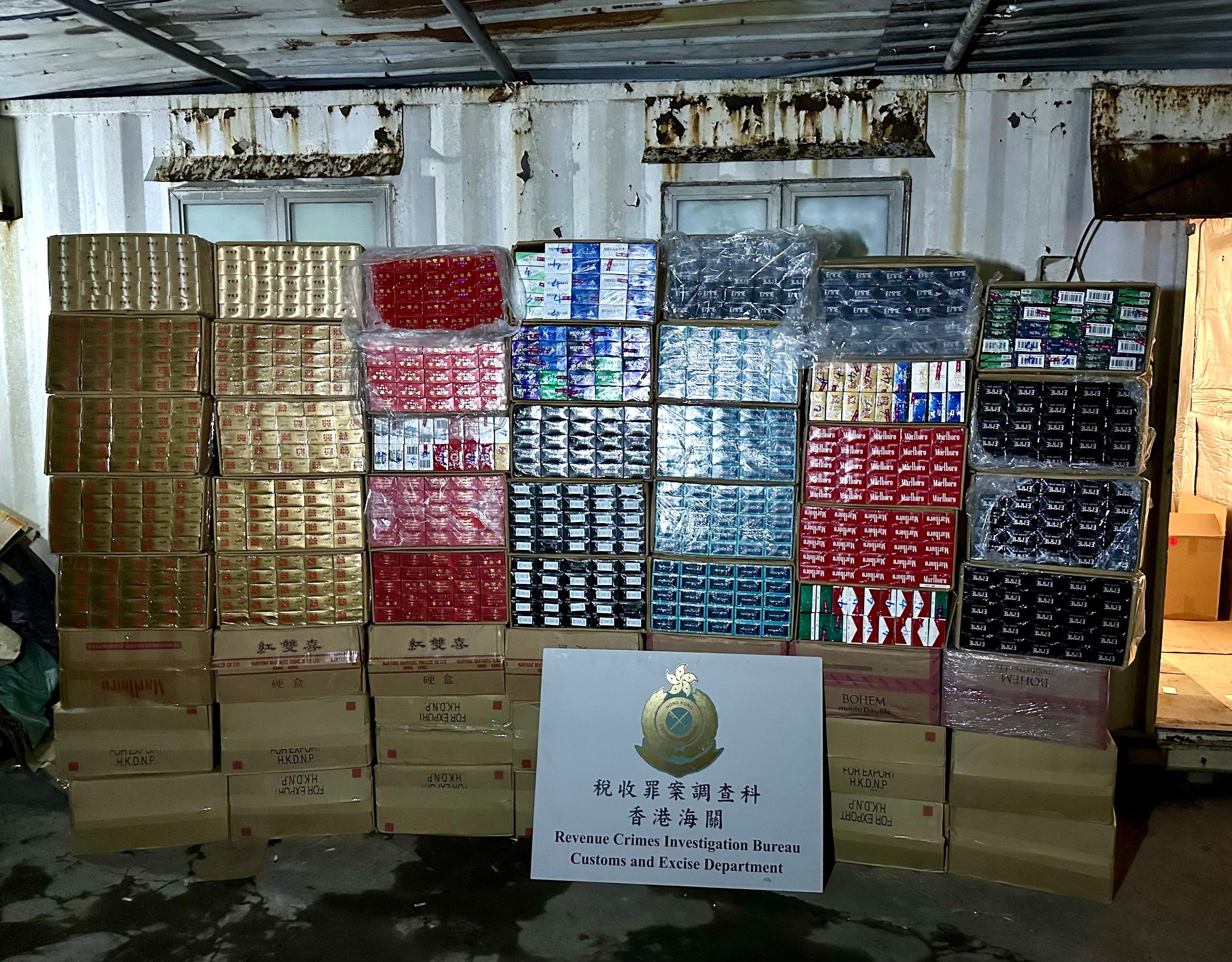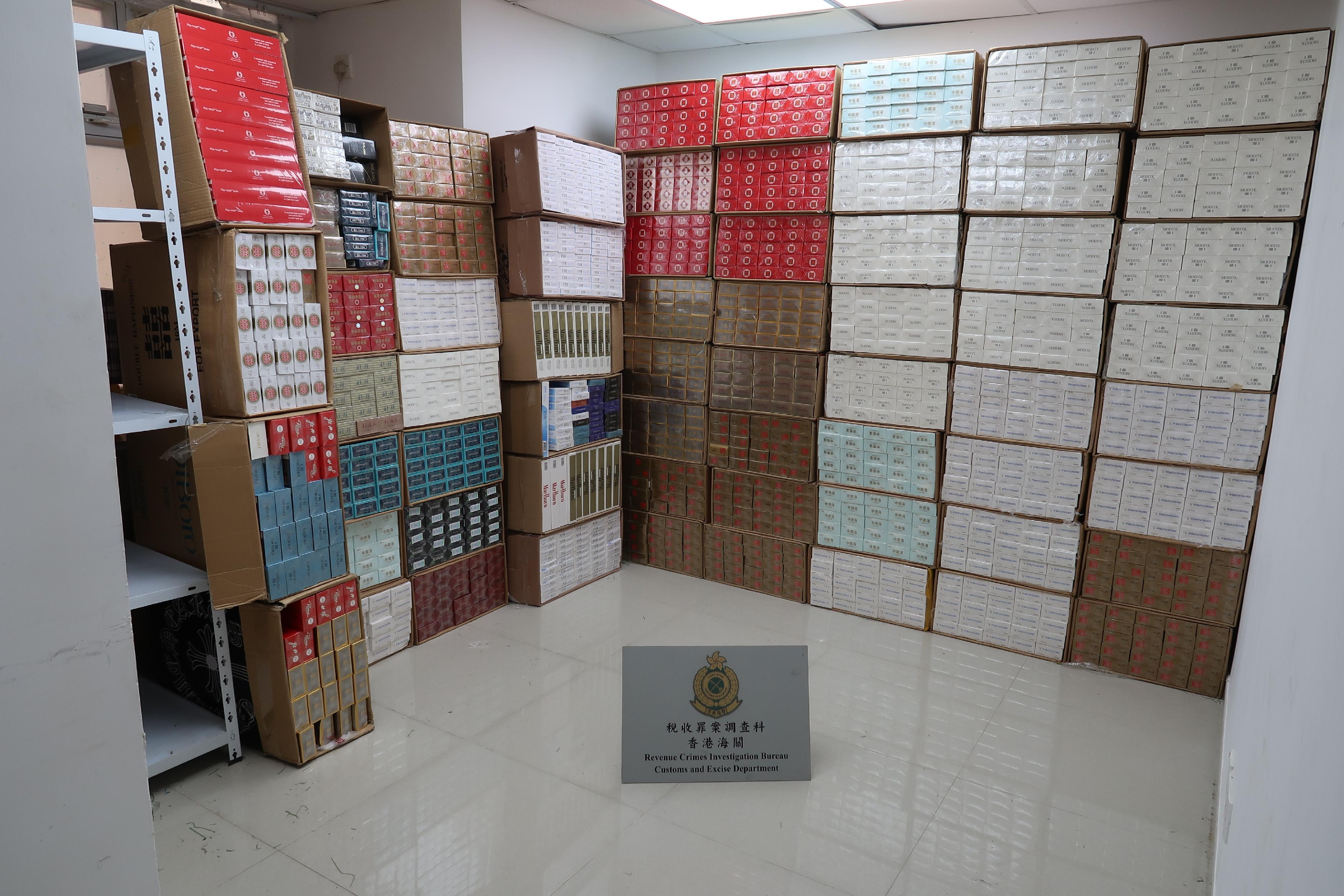 Hong Kong Customs yesterday (August 16) conducted anti-illicit cigarette operations in To Kwa Wan and Tuen Mun respectively, and successfully smashed two suspected illicit cigarette storage centres. A total of about 1.85 million suspected illicit cigarettes with a total estimated market value of about $6.8 million and a duty potential of about $4.6 million were seized.
