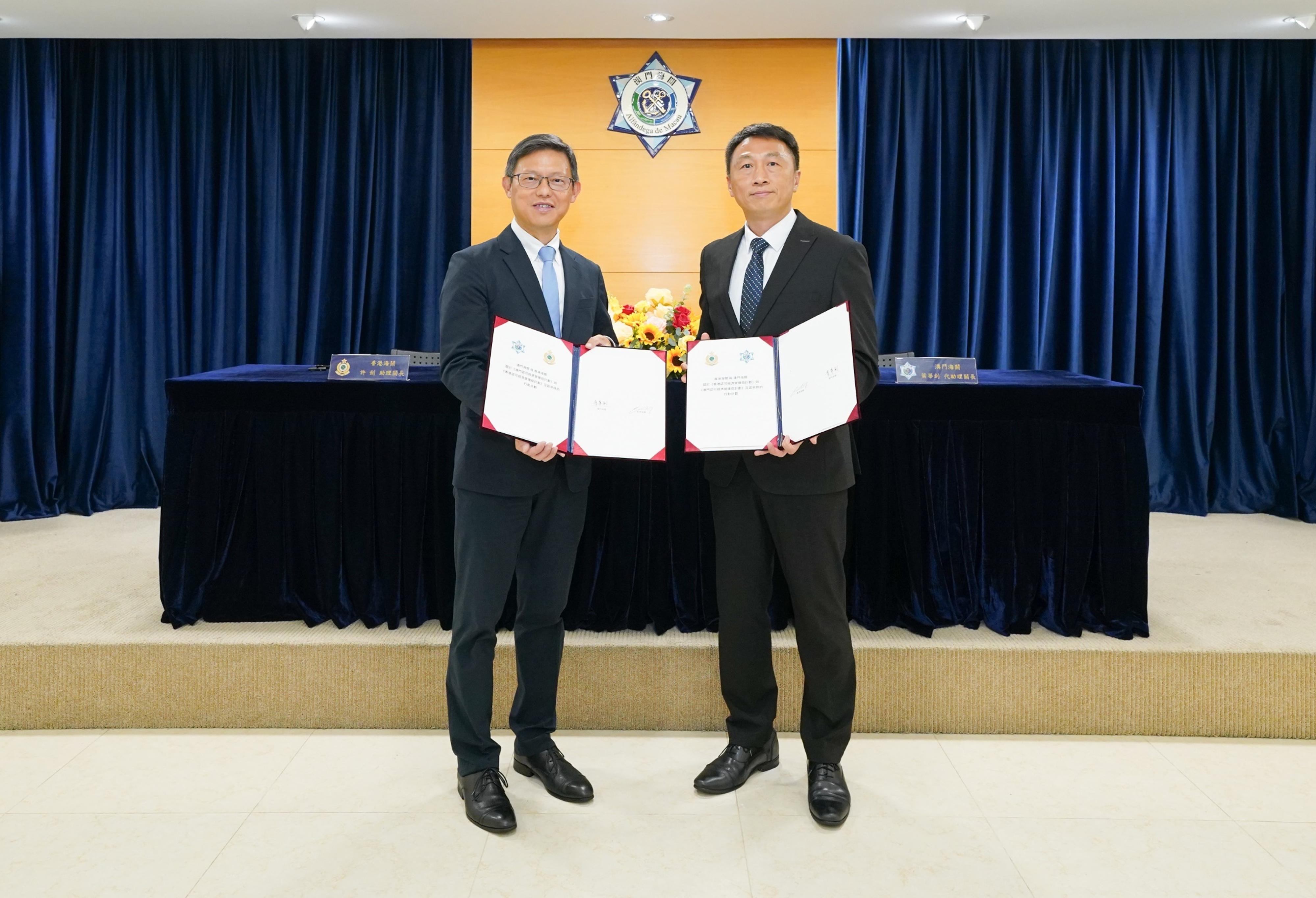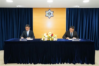 The Assistant Commissioner of Customs and Excise (Excise and Strategic Support), Mr Rudy Hui, today (September 14) attended the Bilateral Authorized Economic Operator (AEO) Mutual Recognition Arrangement (MRA) Meeting held at the Headquarters of Macao Customs Service and signed the AEO MRA Action Plan with the Acting Assistant Director-General of Macao Customs Service, Mr Ip Va-chio. This marks the commencement of a formal negotiation stage for AEO mutual recognition between the two sides.