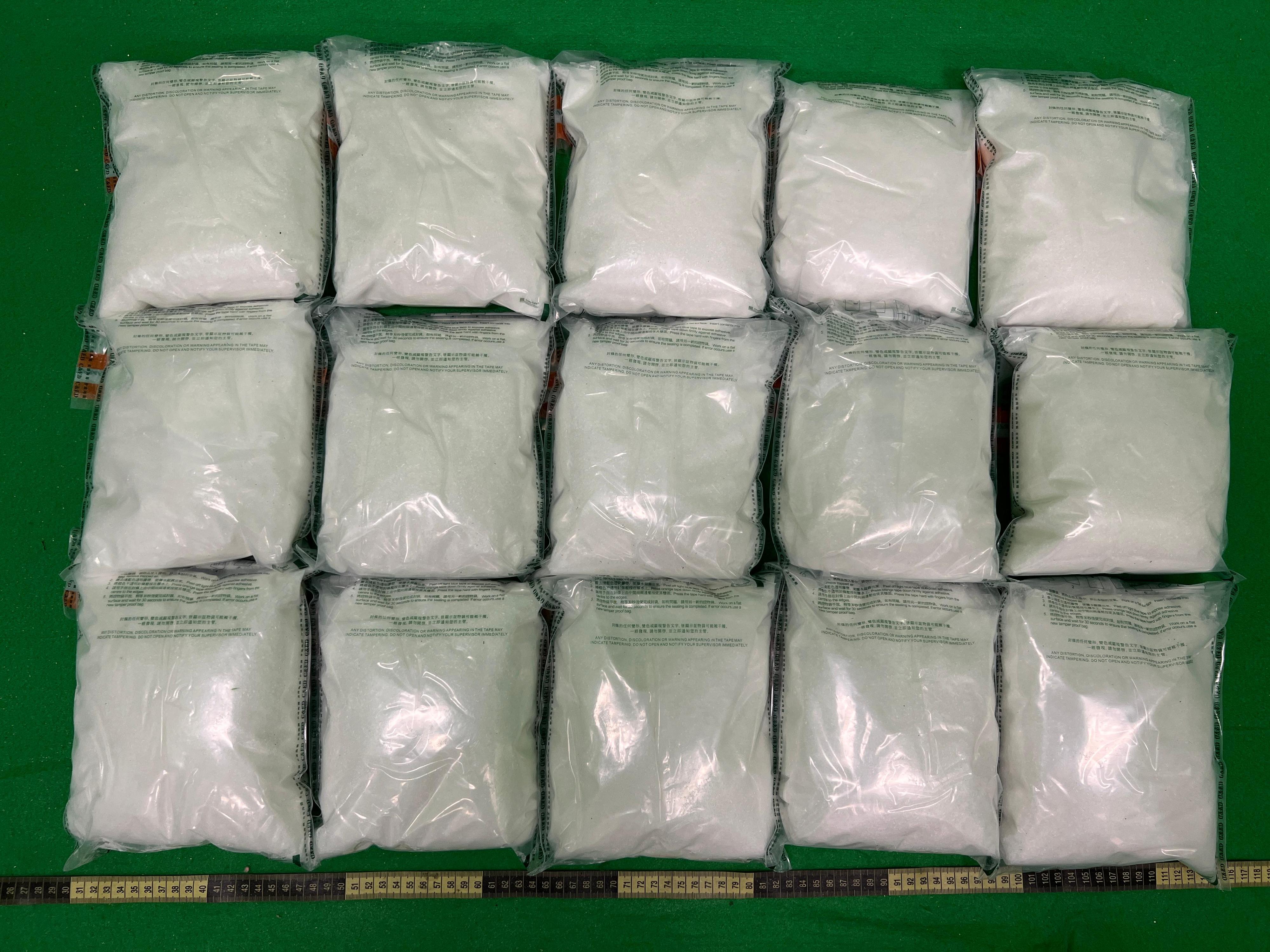 Hong Kong Customs on September 19 seized about 15 kilograms of suspected ketamine with an estimated market value of about $8 million at Hong Kong International Airport.