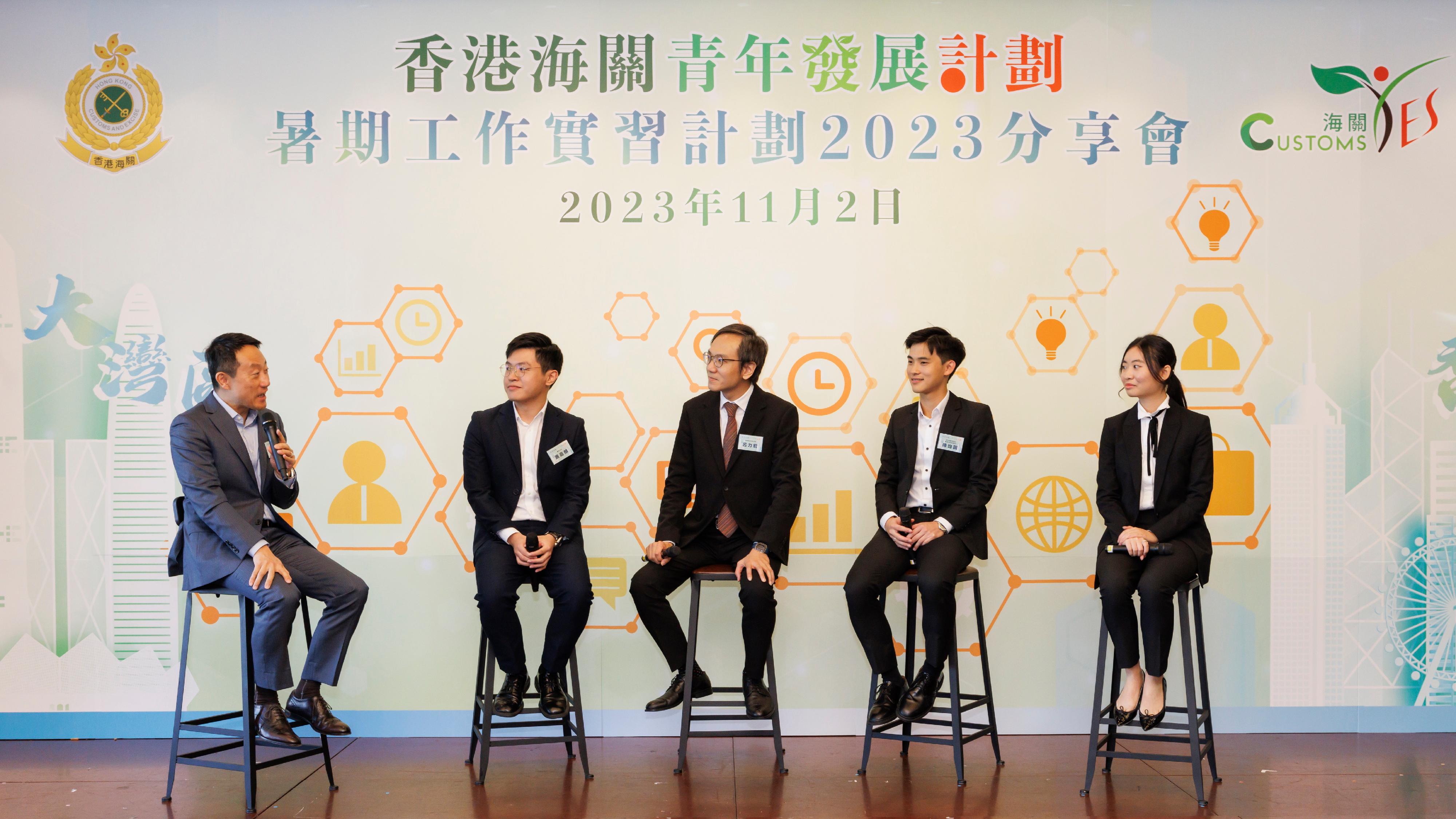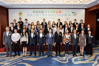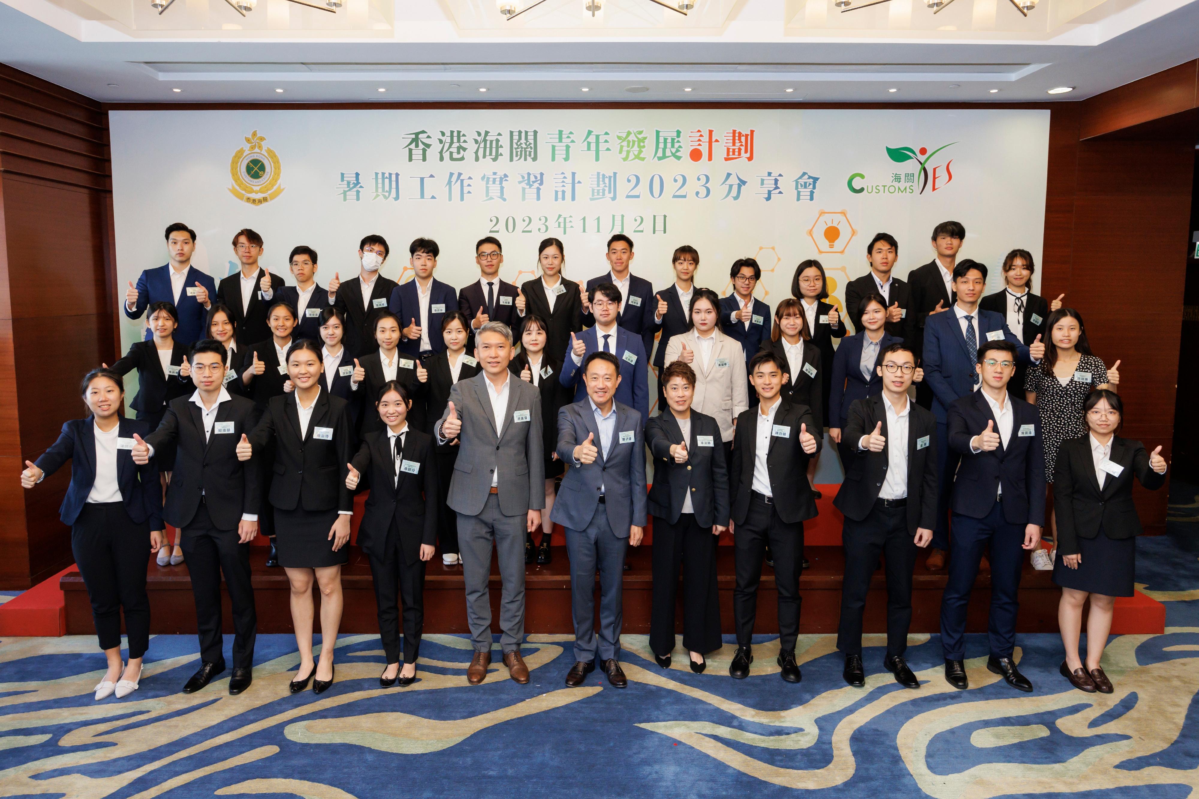 Hong Kong Customs today (November 2) held the "Customs YES" Summer Internship Programme 2023 Certificate Presentation Ceremony and Sharing Session at the Customs Headquarters Building. The event was attended by representatives from supporting organisations, representatives from various formations of Customs, and interns.
