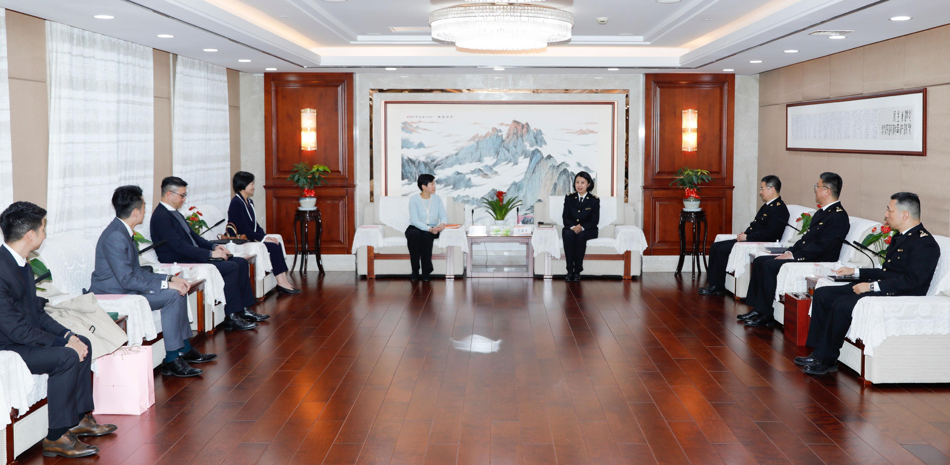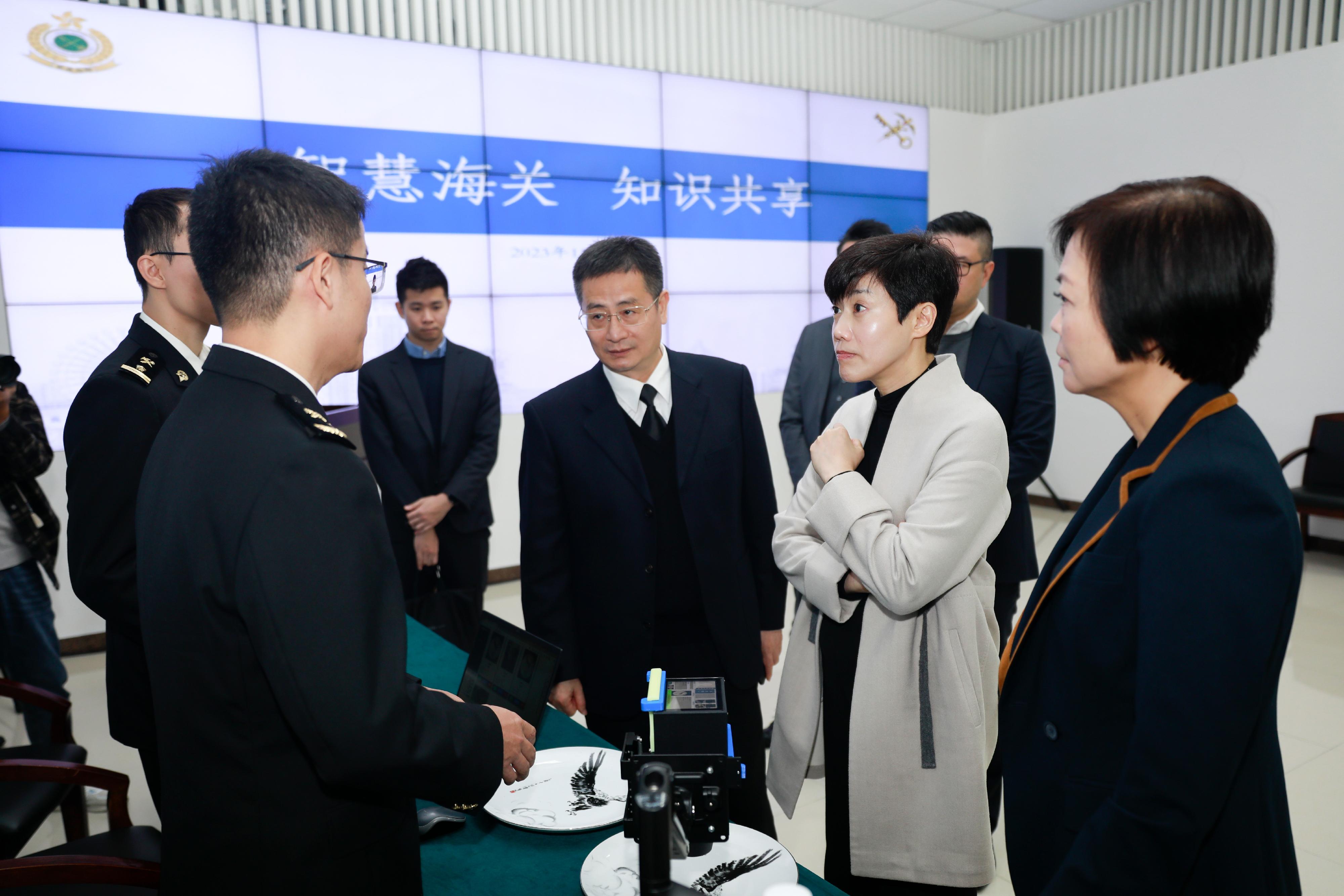 Ms Ho later visited the Smart Customs facilities of Nanchang Customs to study the latest developments of various technologies, including smart supervision of artwork and application of Augmented Reality (AR) technology in remote supervision of supply of live pigs to Hong Kong and Macao.