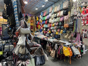 Customs earlier conducted patrols and discovered some hawker stalls selling suspected counterfeit goods in Mong Kok. After investigations, Customs officers took enforcement action today and raided a number of fixed-pitch and mobile hawker stalls on Tung Choi Street where the batch of suspected counterfeit goods, including handbags, leather goods, jerseys, was seized.
