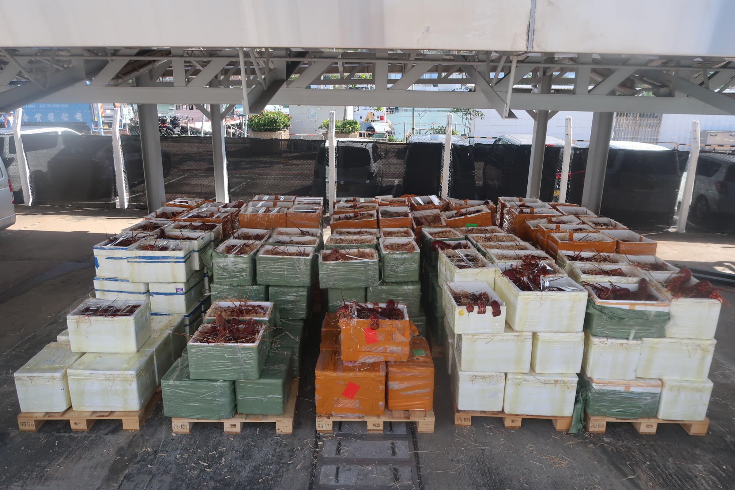 In the anti-smuggling operation conducted in the waters off the south of Lamma Island last night, Customs spotted a suspicious fishing vessel on which several men were suspected of participating in smuggling activities. Customs officers immediately intercepted the fishing vessel and seized the batch of suspected smuggled lobsters on board.