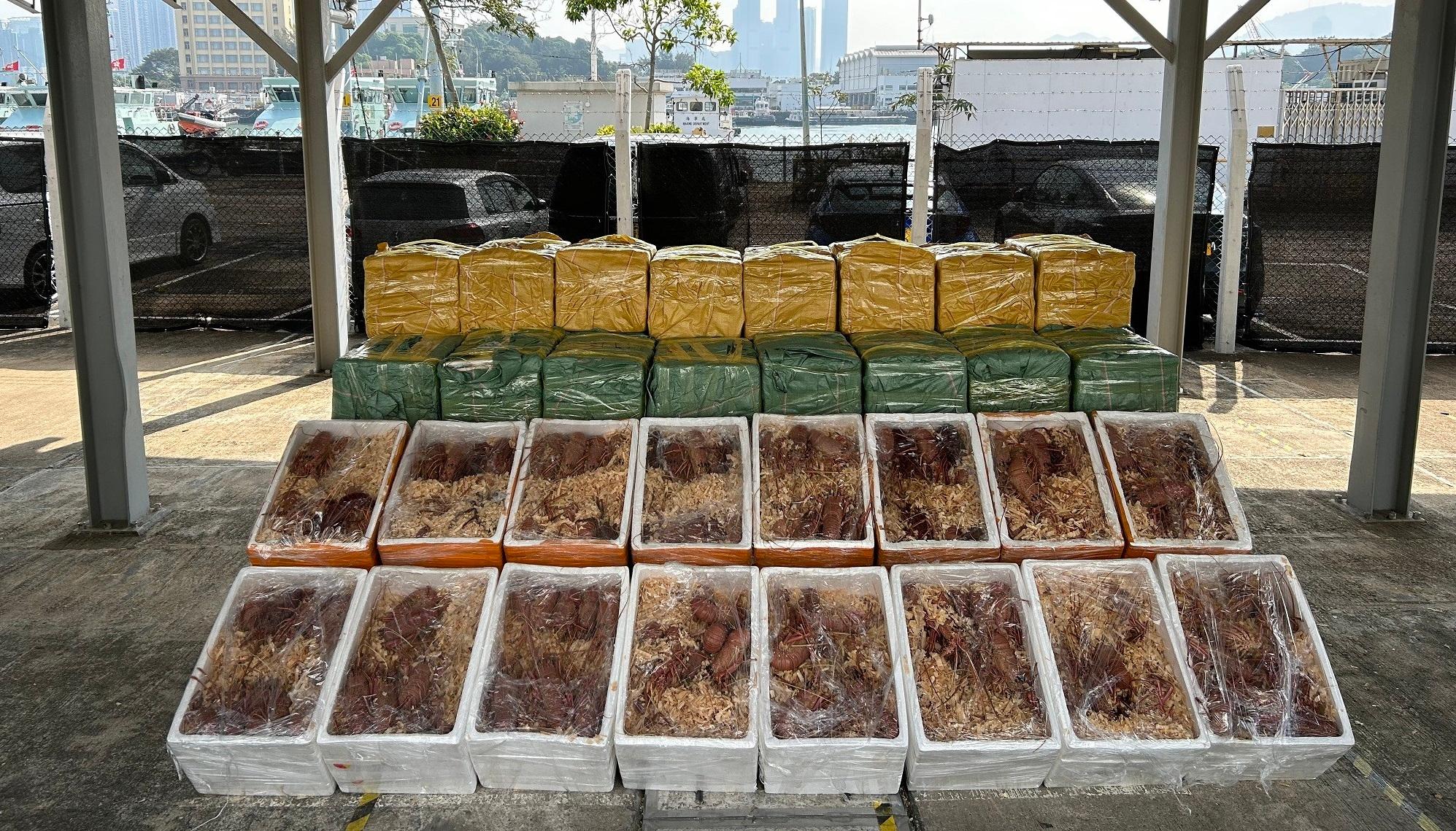 Hong Kong Customs yesterday (January 10) mounted an anti-smuggling operation in the vicinity of Tai O, Lantau Island, and detected a suspected smuggling case using speedboats. About 3 100 kilograms of suspected smuggled lobsters, with an estimated market value of about $1.24 million, were seized.