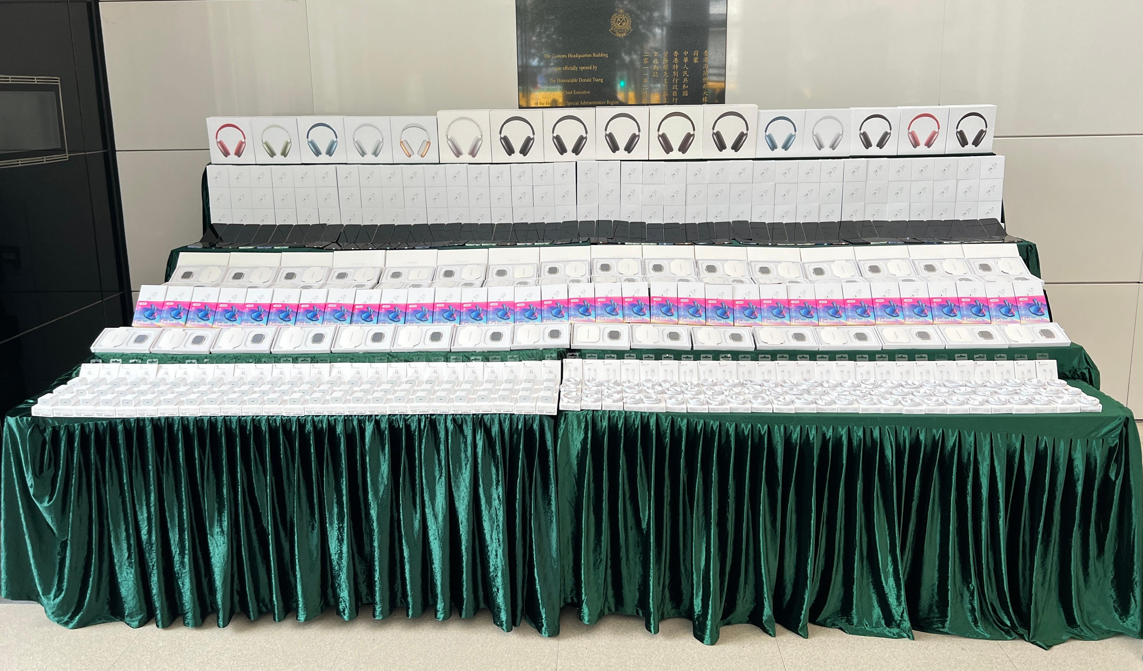 ​Hong Kong Customs conducted a two-week enforcement operation from January 8 to 19 to combat counterfeit electronic goods activities involving cross-boundary transhipments. During the operation, Customs detected 19 related cases and seized more than 14 800 items of suspected counterfeit electronic goods, including earphones, mobile phones, computer tablets and electronic watches, with an estimated market value of over $10 million. Three men were arrested.