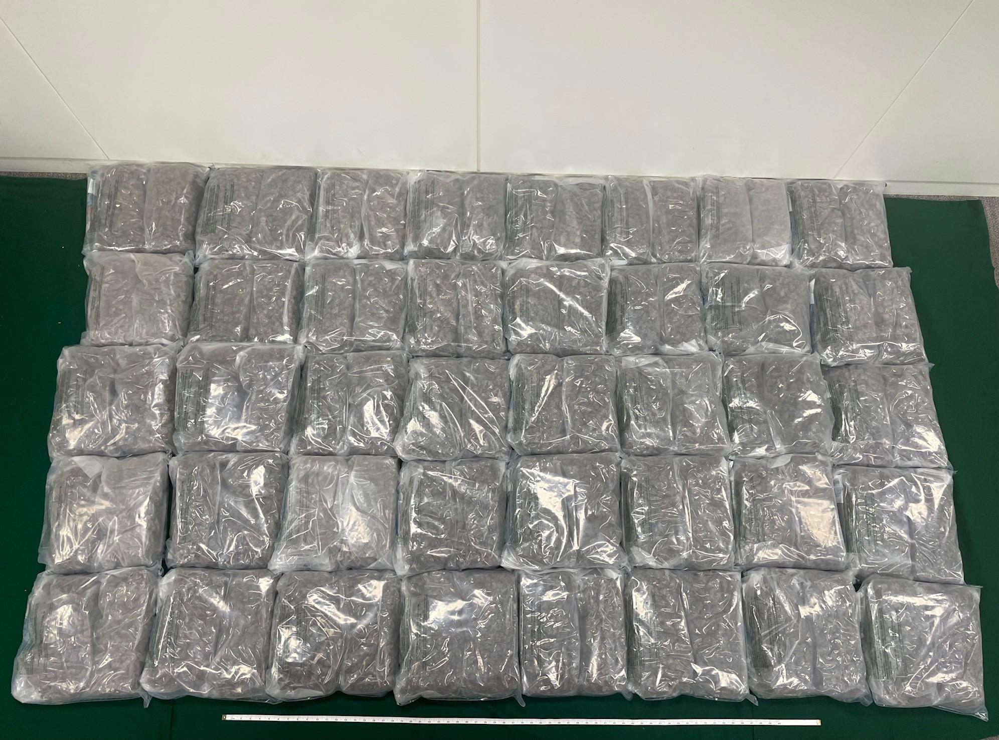 In the first case, through risk assessment, Customs on January 3 selected a seaborne consolidated consignment, declared as carrying pet foods and arriving from Thailand, for inspection at the Kwai Chung Customhouse Cargo Examination Compound. Upon examination, about 40kg of suspected cannabis buds was found mixed with the pet food goods. Upon a follow-up investigation, Customs officers conducted controlled delivery operations and arrested a 55-year-old male consignee who claimed to be a driver in Yuen Long on January 22. An investigation is ongoing.