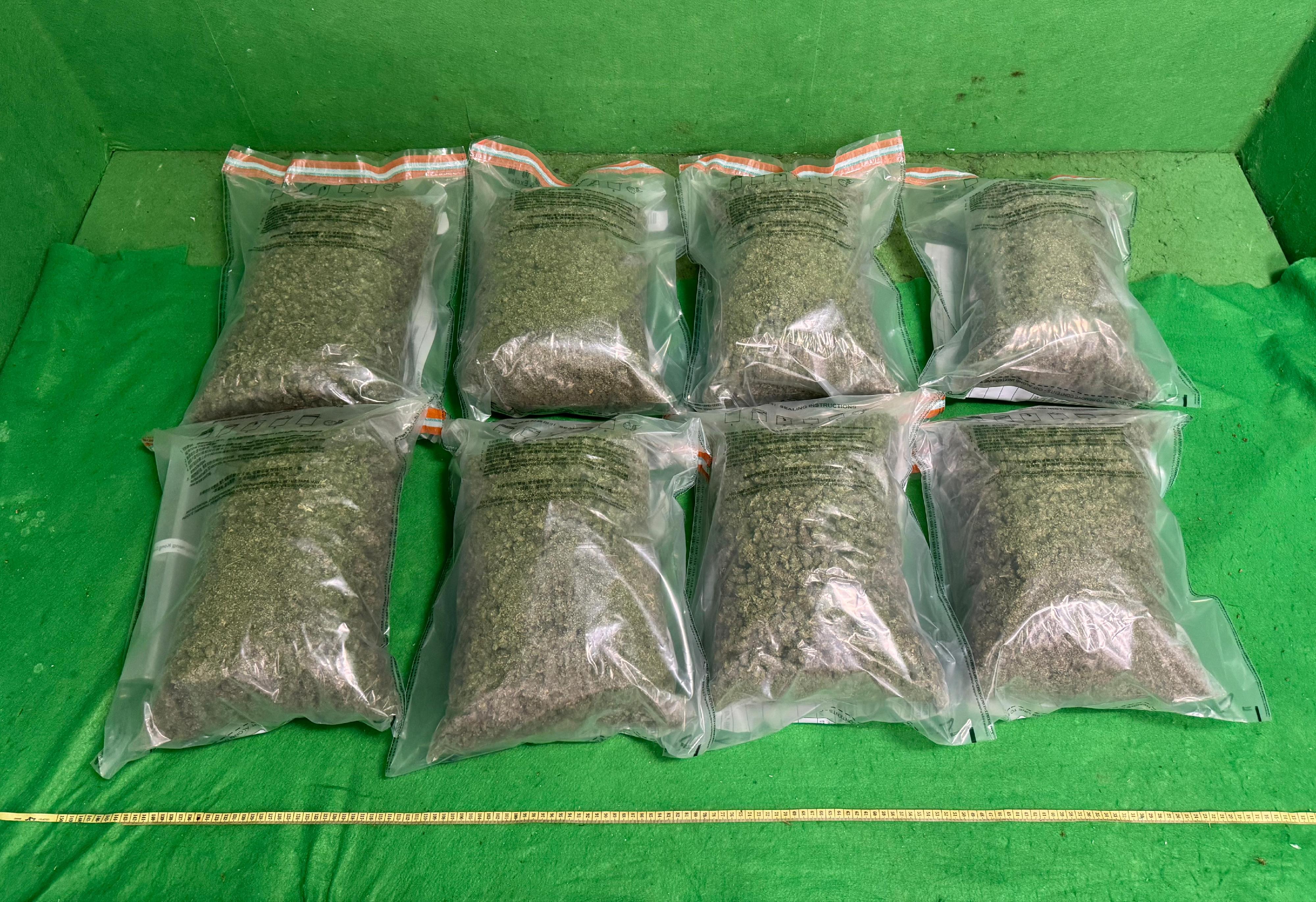 ​Hong Kong Customs today (February 17) detected a drug trafficking case involving baggage concealment at Hong Kong International Airport. About eight kilograms of suspected cannabis buds with an estimated market value of about $1.6 million were seized.