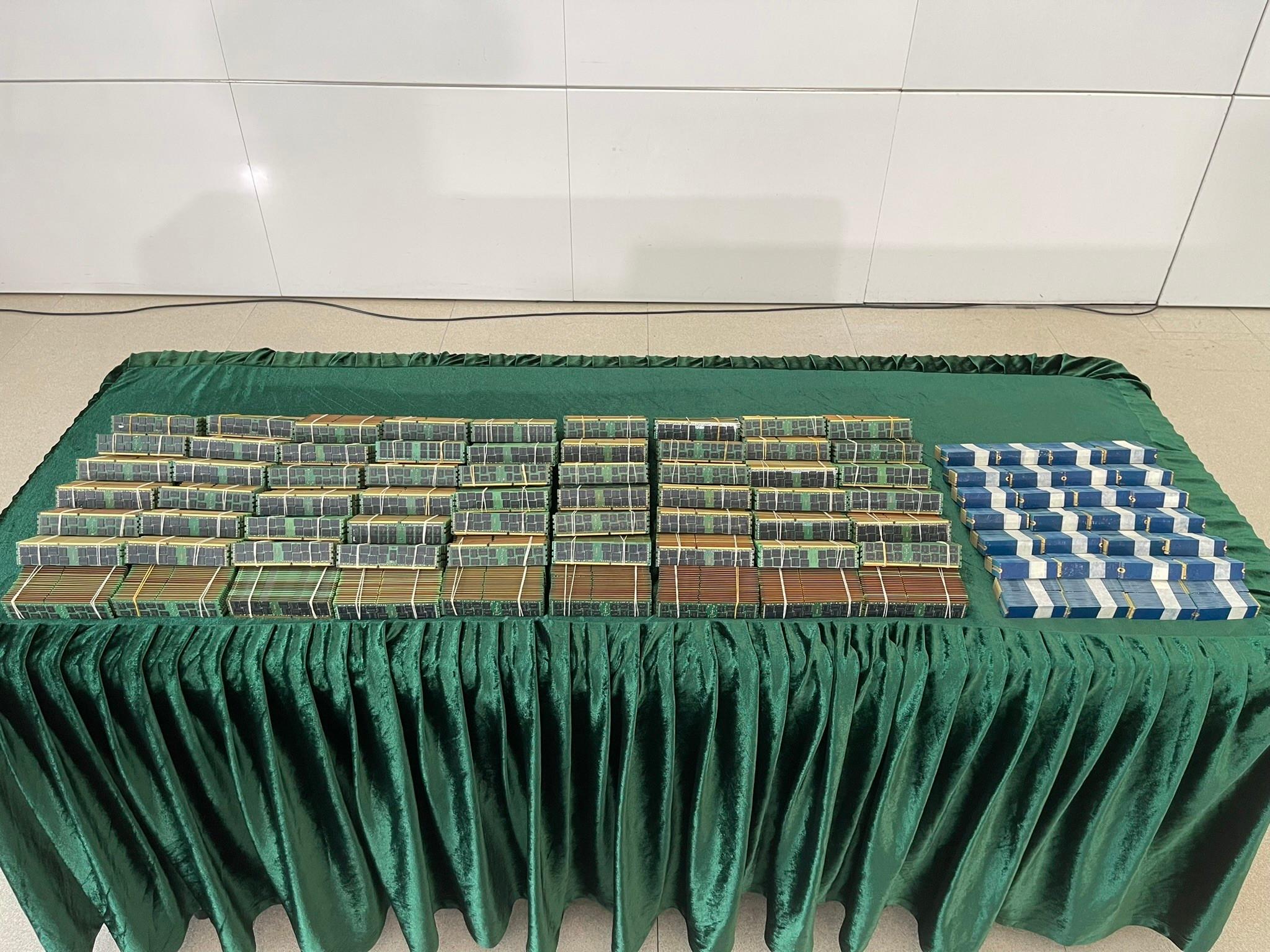 Hong Kong Customs yesterday (February 21) detected a suspected smuggling case involving a medium goods vehicle at the Shenzhen Bay Control Point. About 1 300 suspected smuggled computer RAM units and about 700 suspected smuggled solid state drives with a total estimated market value of about $1.1 million were seized.