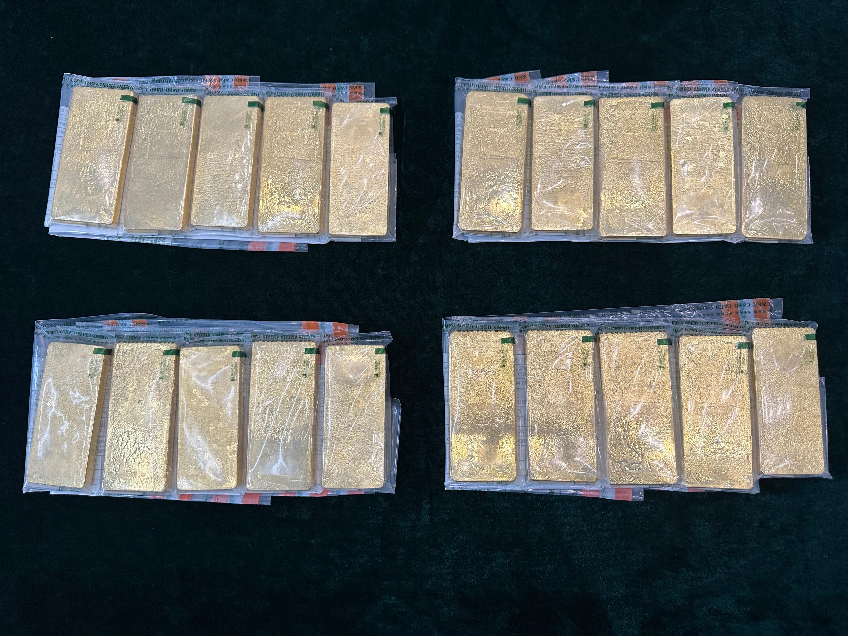 Hong Kong Customs yesterday (February 22) seized 20 slabs of suspected smuggled gold weighing about 20 kilograms in total, with an estimated market value of about $10 million, at the Hong Kong-Zhuhai-Macao Bridge Hong Kong Port.