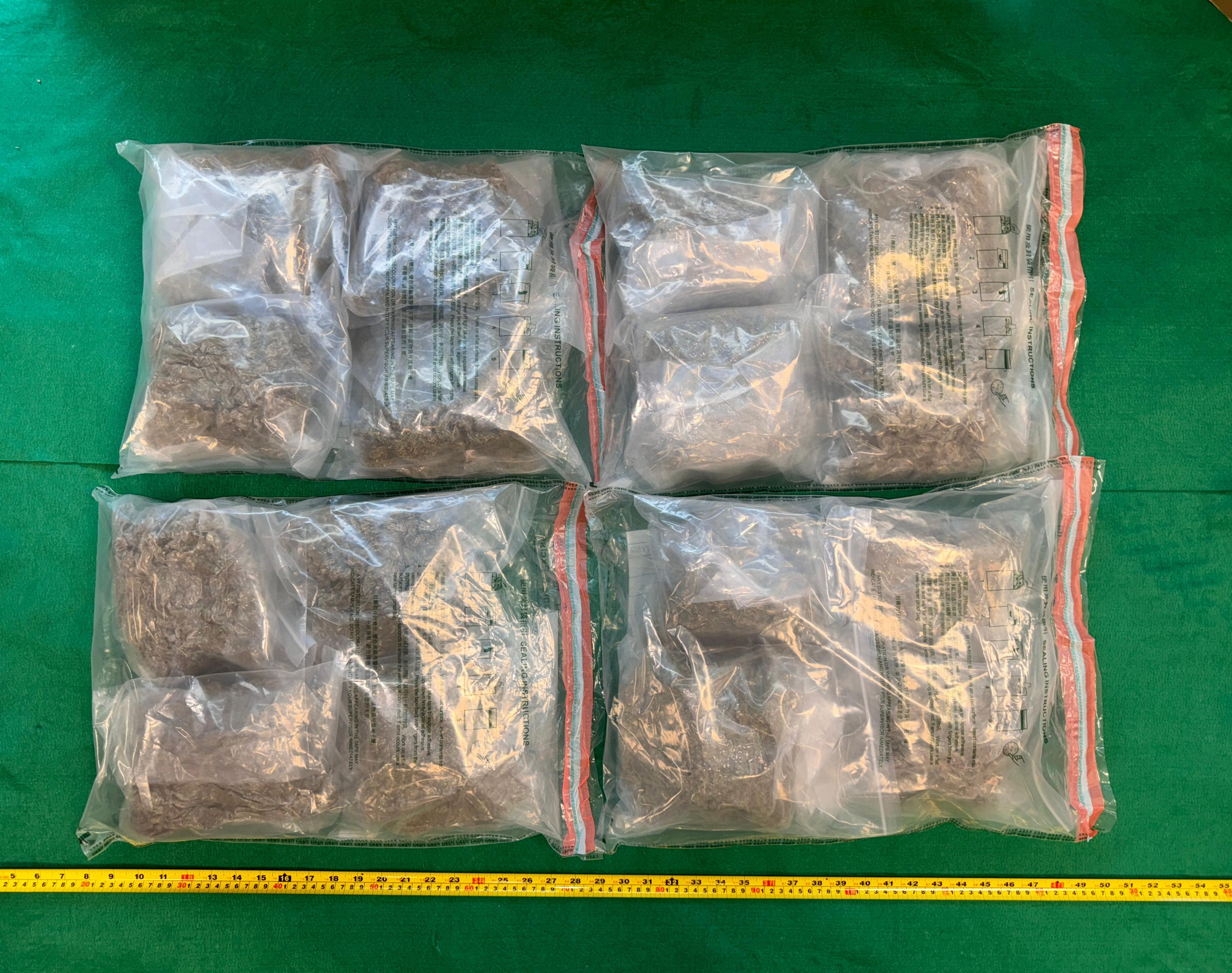 A 53-year-old female passenger arrived in Hong Kong from Bangkok, Thailand, yesterday. During customs clearance, Customs officers found 16 bags of suspected cannabis buds, with a total weight of about 8.32kg, inside her checked-in luggage. The woman was subsequently arrested.
