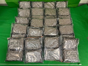 The first case involved two male passengers, aged 46 and 25, who arrived in Hong Kong from Bangkok, Thailand, yesterday. During customs clearance, Customs officers seized about 23kg of suspected cannabis buds concealed in the check-in luggage of the 46-year-old man. The two men were subsequently arrested.