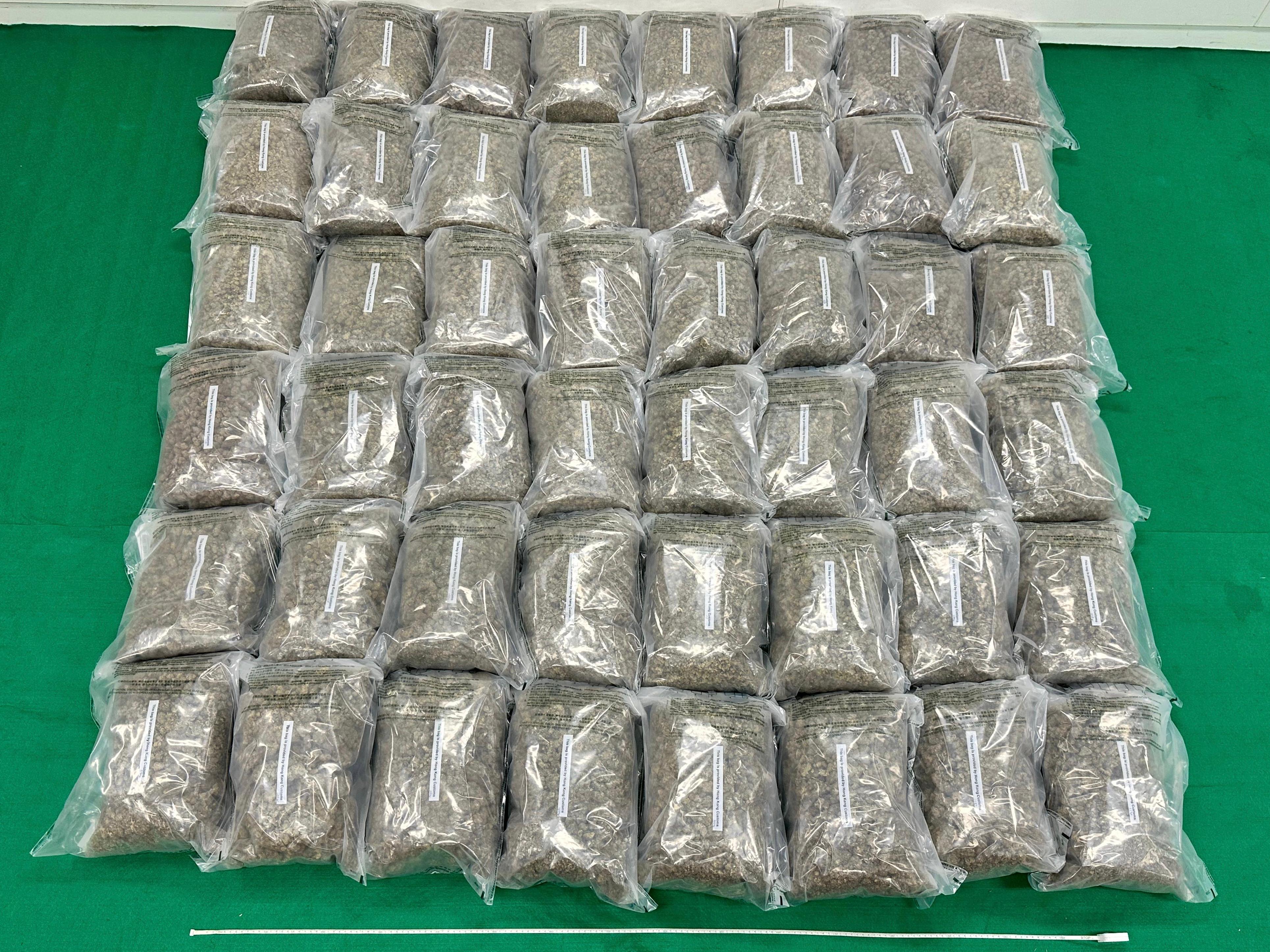 ​Hong Kong Customs seized about 77 kilograms of suspected cannabis buds, with an estimated market value of about $16 million, at the Kwai Chung Customhouse Cargo Examination Compound on May 9.