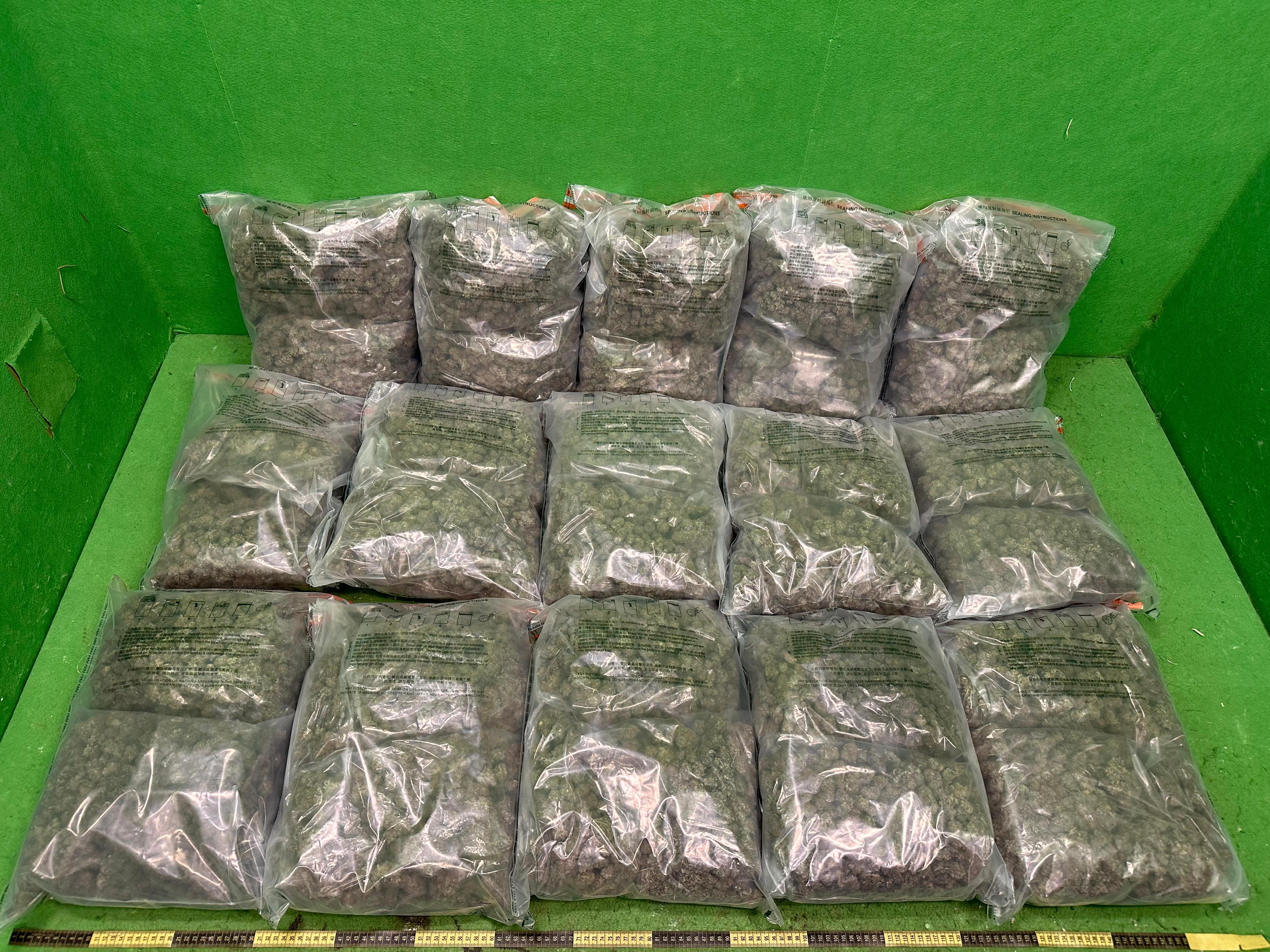 Hong Kong Customs on May 20, 23 and 25 seized a total of about 20 kilograms of suspected cannabis buds with an estimated market value of about $4 million at Hong Kong International Airport and the Shenzhen Bay Control Point. Three men were arrested.