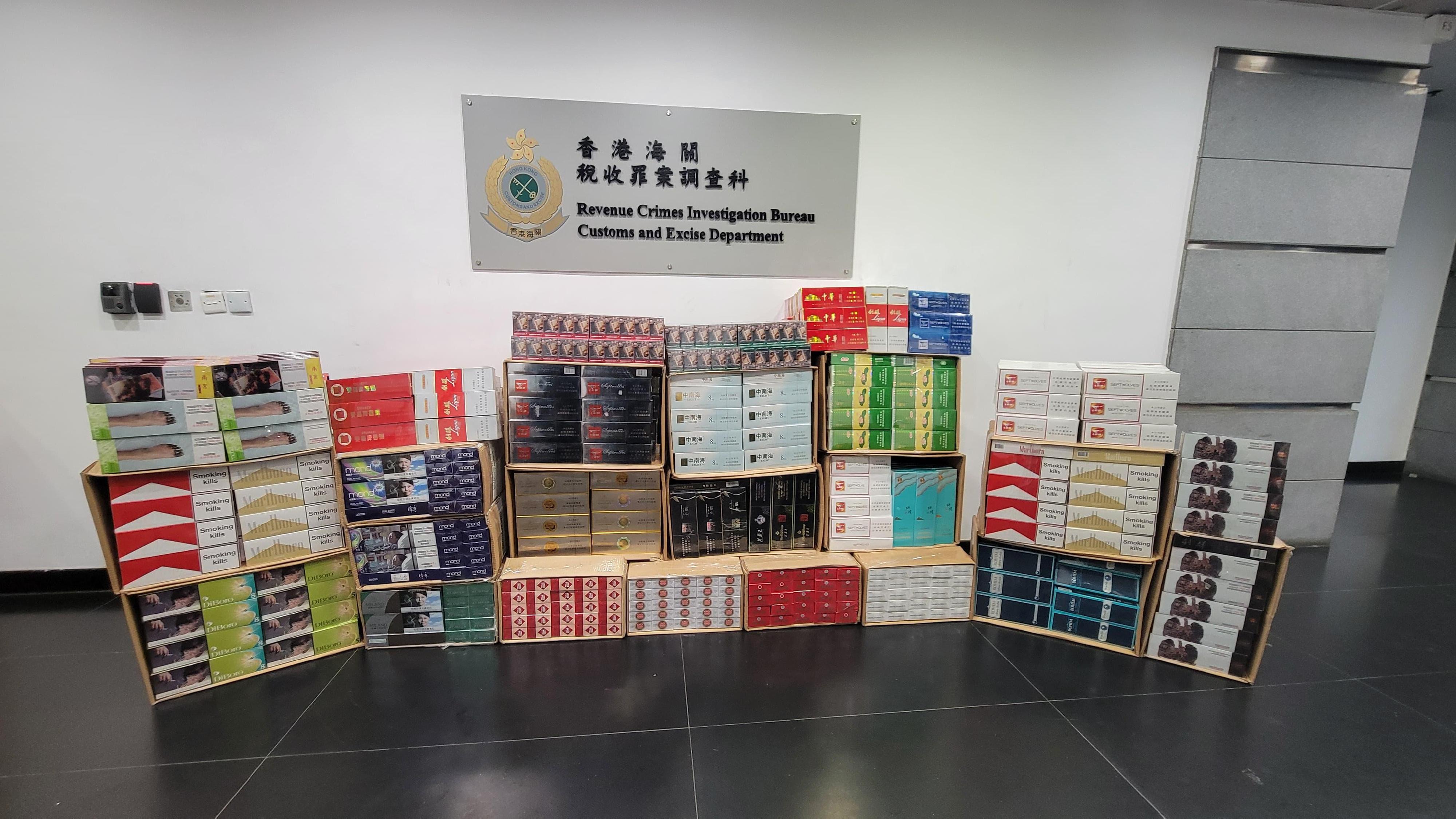 During an anti-illicit cigarette operation conducted in Tsuen Wan last night, Customs intercepted a suspicious man holding a carton box and a nylon bag on Sha Tsui Road. About 10 000 suspected illicit cigarettes were seized from the man and he was subsequently arrested. Later, Customs officers escorted the 48-year-old man, who claimed to be a construction worker, to a residential unit of a tenement building nearby for a search, and further seized about 220 000 suspected illicit cigarettes therein.