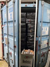 Upon searching a metal shed of about 2 000 square feet in Wing Ping Village, San Tin, yesterday afternoon, Customs seized the batch of suspected illicit cigarettes from three containers there and arrested two men, aged 44 and 66, suspected to be connected with the case.