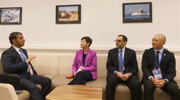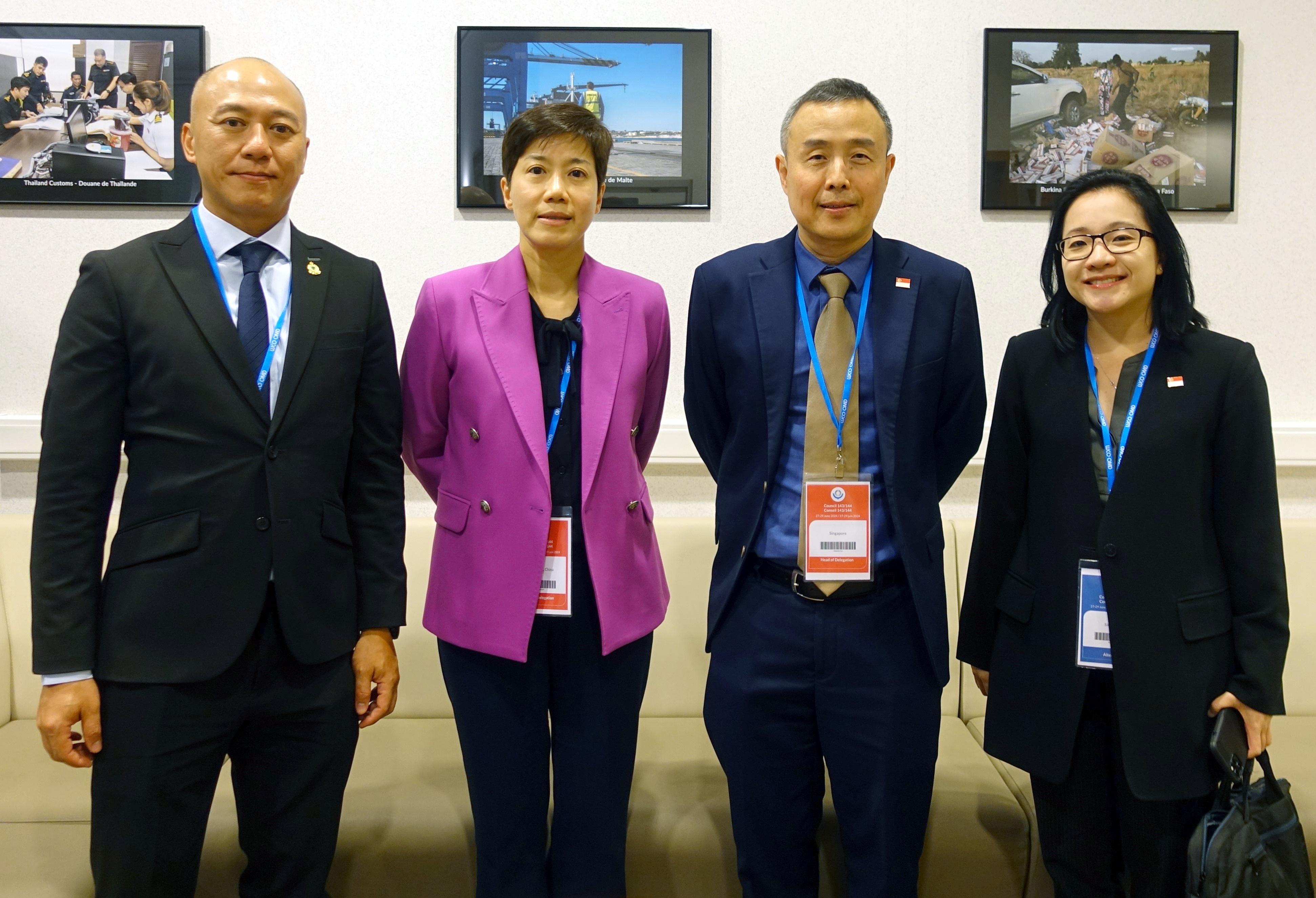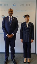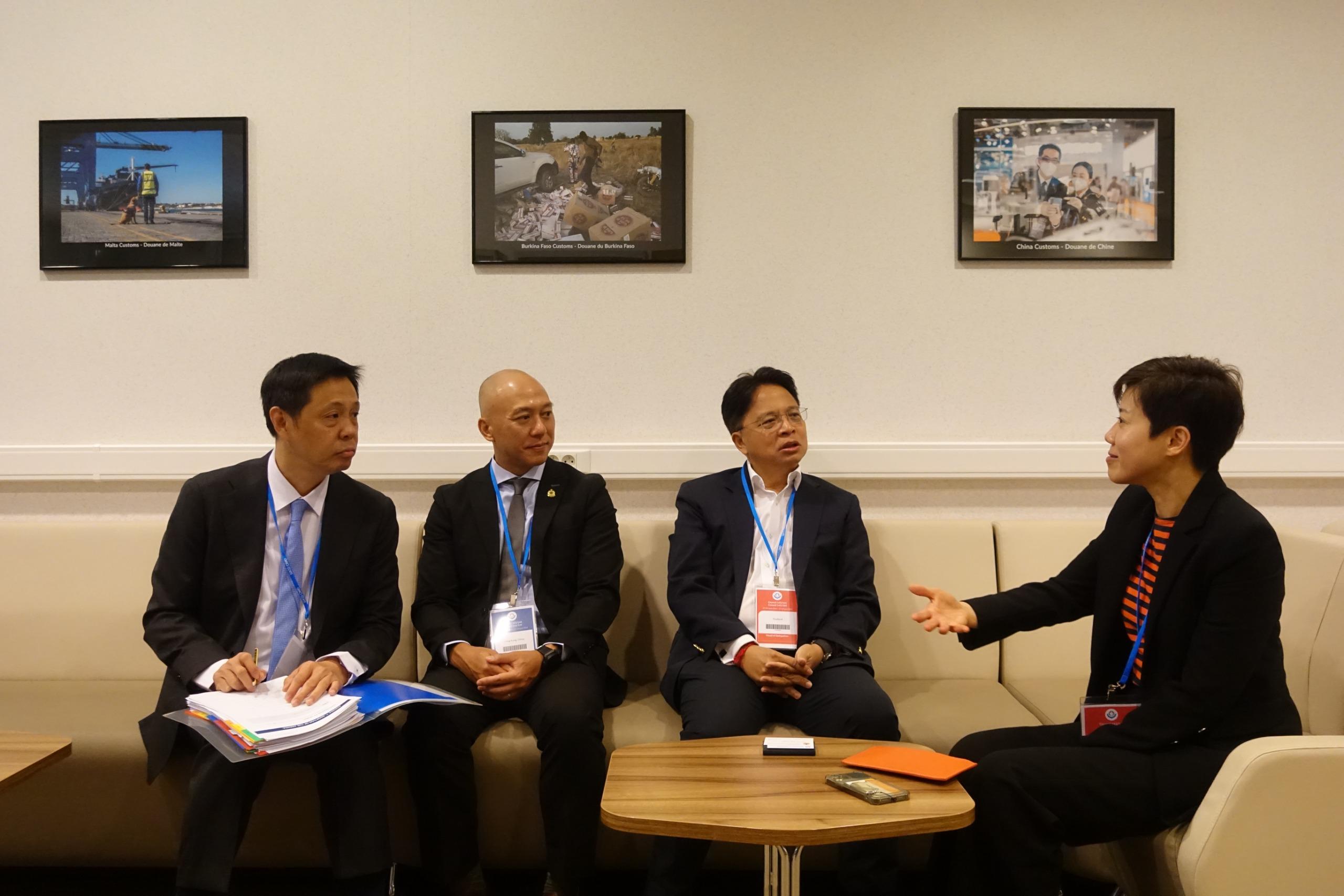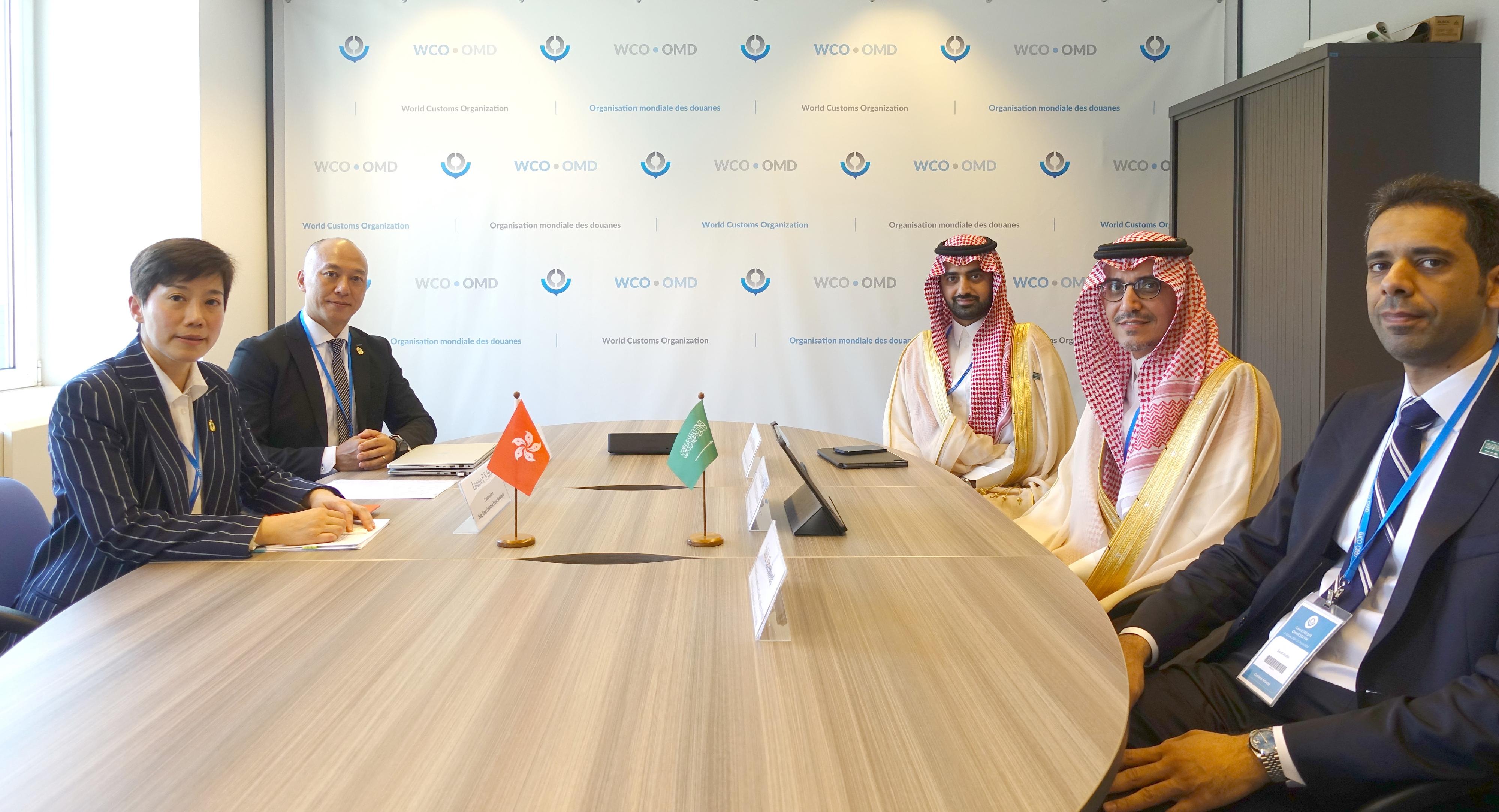 In between the Council sessions, Ms Ho met with the Secretary General of the WCO, Mr Ian Saunders, and briefed him on the preparations for Hong Kong Customs' assumption of the vice-chairmanship, stressing that full preparations and deployment had been made for the work in the next two years. She also held a bilateral meeting with the Governor of the Zakat, Tax and Customs Authority of Saudi Arabia, Mr Suhail bin Muhammad Abanmi, to enhance mutual communication. Furthermore, Ms Ho actively engaged in dialogue exchange with heads of Customs administrations worldwide, including the Director General of the Federal Authority for Identity, Citizenship, Customs and Port Security of the United Arab Emirates, Mr Ahmed Abdullah Bin Lahej Al Falasi; the Commissioner General of the Maldives Customs Service, Mr Yoosuf Maaniu Mohamed; the Director General of the Singapore Customs, Mr Tan Hung Hooi; the Commissioner of Bureau of Customs of the Republic of the Philippines, Mr Bienvenido Y Rubio; and the Director General of the Thai Customs Department, Mr Theeraj Athanavanich. They discussed the Customs Co-operative Arrangement, the Authorized Economic Operator Mutual Recognition Arrangement and co-operation in other aspects of Customs.