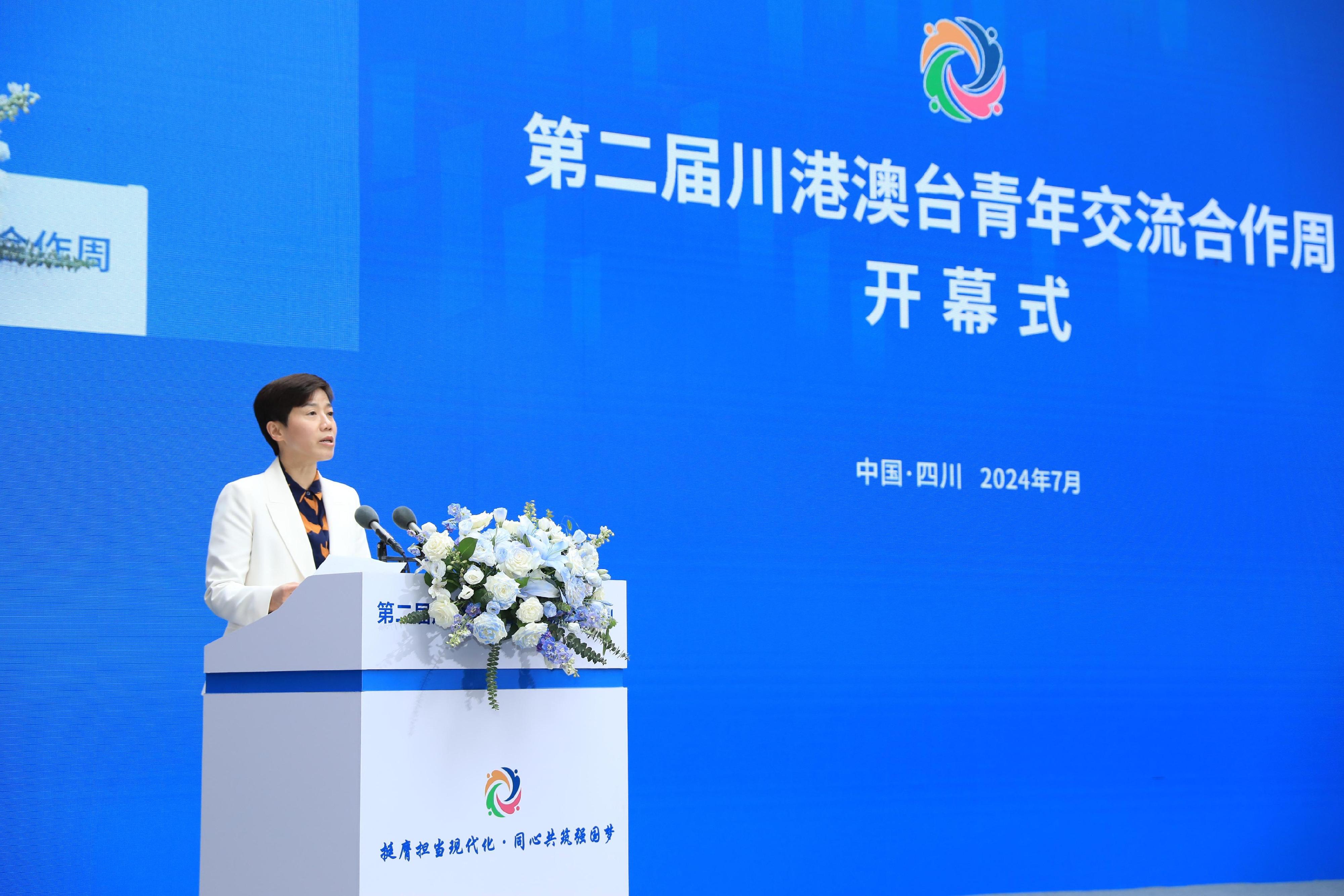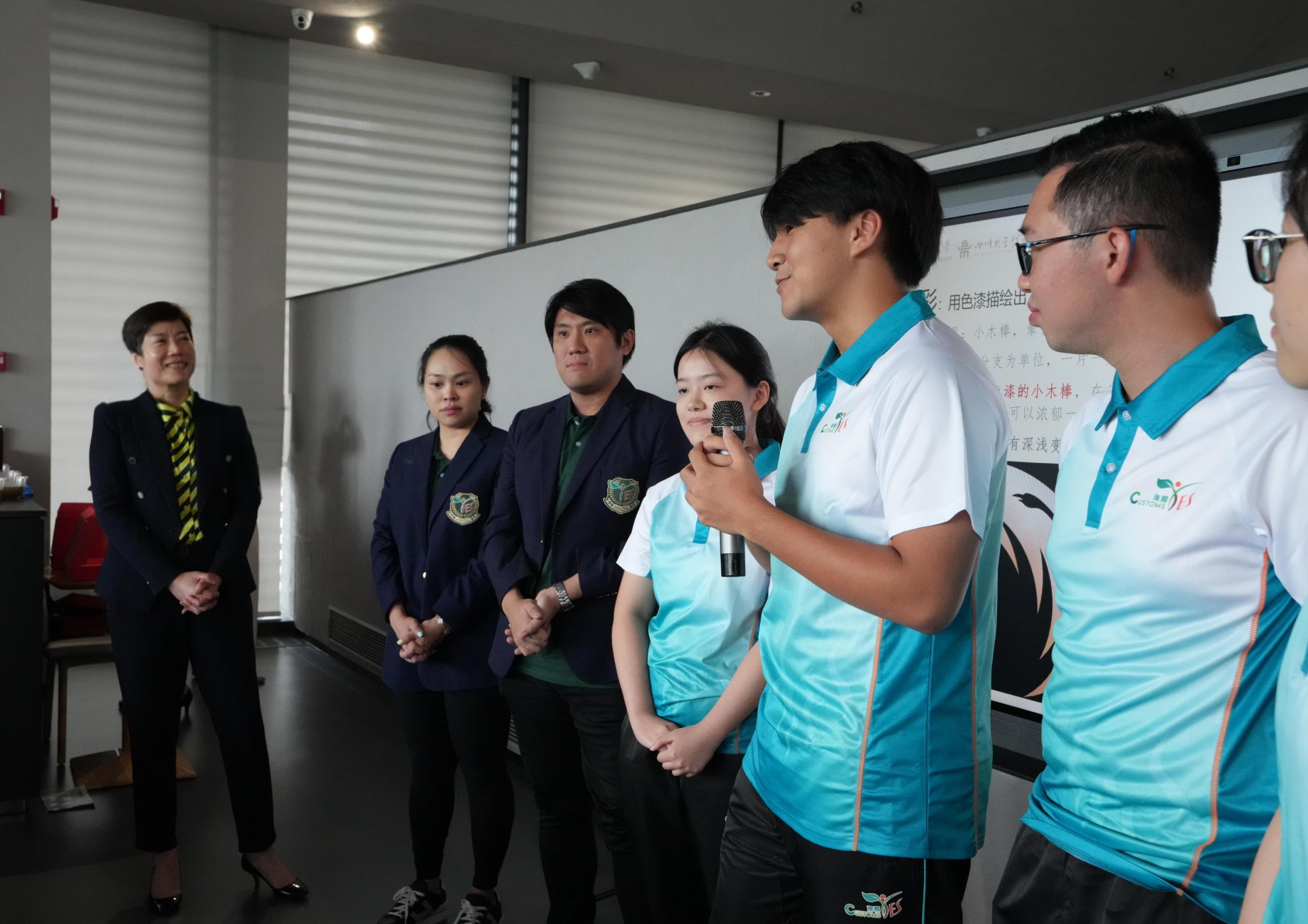 Ms Ho today (July 4) led the delegation of "Customs YES" to attend the opening ceremony of the 2nd Sichuan-Hong Kong-Macao-Taiwan Youth Exchange and Cooperation Week and launch ceremony of "Thousands of Hong Kong Youth Exploring Sichuan". In her speech, Ms Ho encouraged the participants to embrace the ideals and aspirations of "contributing to the prosperity of the country and the rejuvenation of the nation", and to utilise their strengths to become a new impetus for promoting national development and integration among the four places.