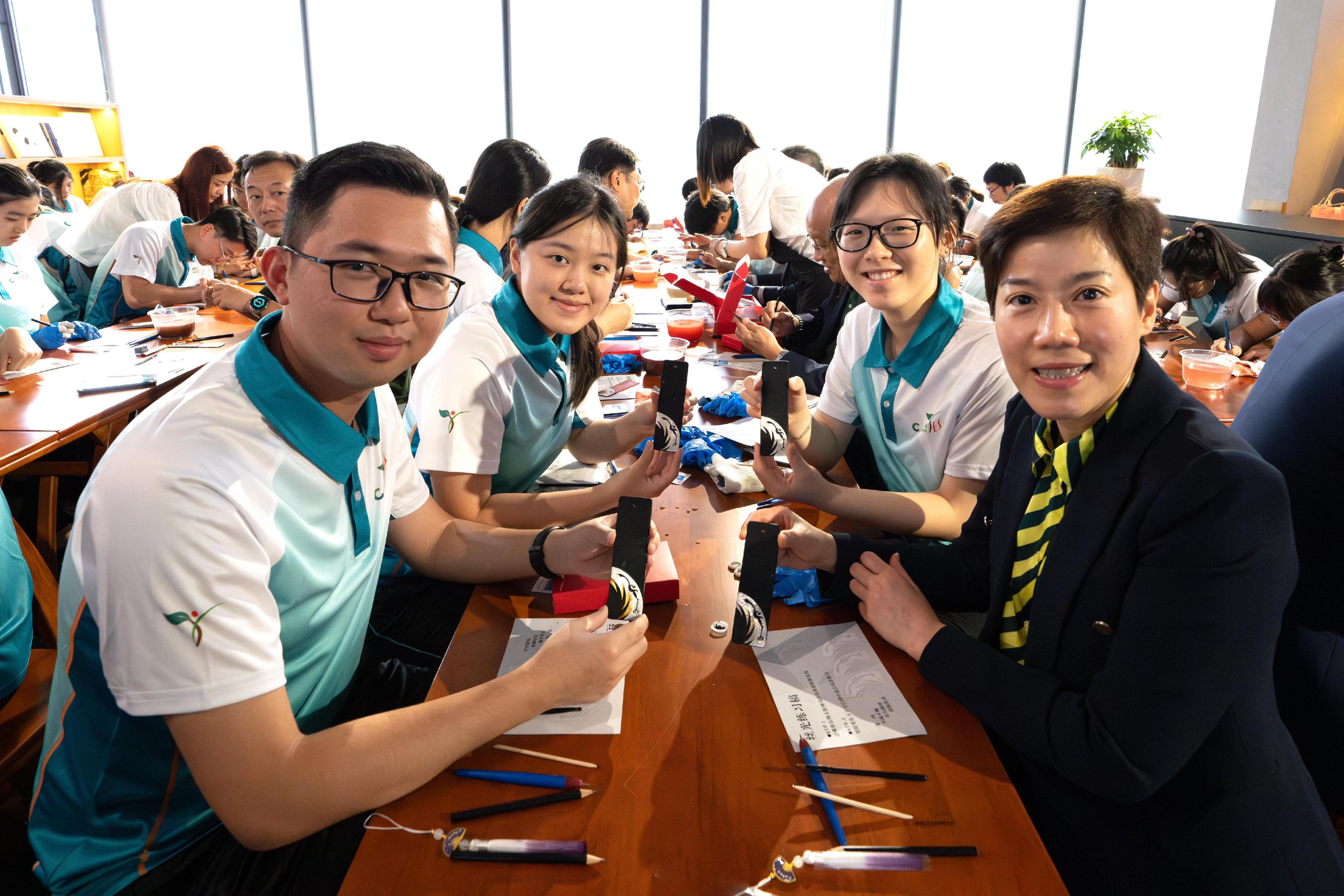 On the same day, Ms Ho led 50 "Customs YES" members on a visit to the Sichuan University Museum, where they joined a lacquer painting workshop of the "Sun and Immortal Birds". She encouraged the members to learn about the profound and precious history of the country and to preserve the excellent Chinese culture through experiencing traditional craftsmanship.