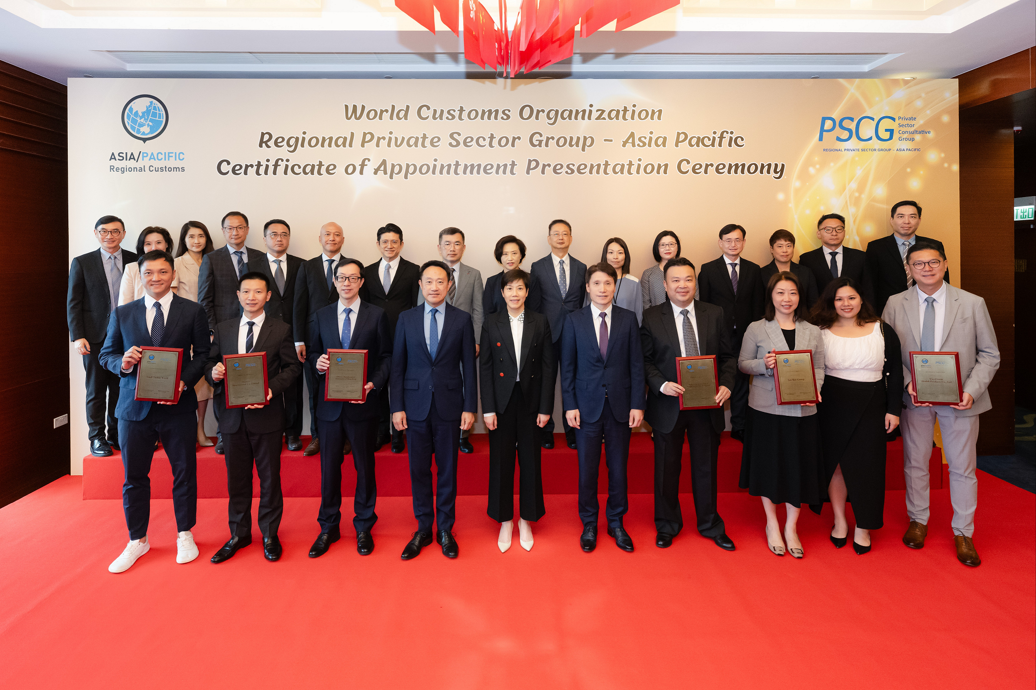 Hong Kong Customs today (July 24) held the Certificate of Appointment Presentation Ceremony of World Customs Organization (WCO) Regional Private Sector Group (RPSG) - Asia Pacific (AP) at the Customs Headquarters Building. The Commissioner of Customs and Excise, Ms Louise Ho, in the capacity of WCO Vice-Chairperson for the Asia/Pacific (A/P) Region, officiated at the ceremony and presented appointment certificates to six members from various sectors in Hong Kong.