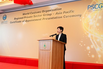 Speaking at the presentation ceremony, Ms Ho said that one of the fundamental roles of customs authorities is to connect and collaborate with customs organisations globally. She firmly believes that the success of this endeavour depends on the efforts to strengthen relationships with private industries, which are essential to address challenges brought by complex global situations. She expressed deep gratitude to the six newly joined Hong Kong enterprises and institutions, which come from different sectors, including logistic and business associations, e-commerce platforms, high-end electronic devices and information technology, metal resources, and health supplements. She believed that their participation could foster closer co-operation between customs authorities and the private sector, and create a more robust partnership between Hong Kong enterprises and other A/P economies. By assisting more local companies to "go global", further economic and international trade opportunities will be uncovered across A/P and international markets.