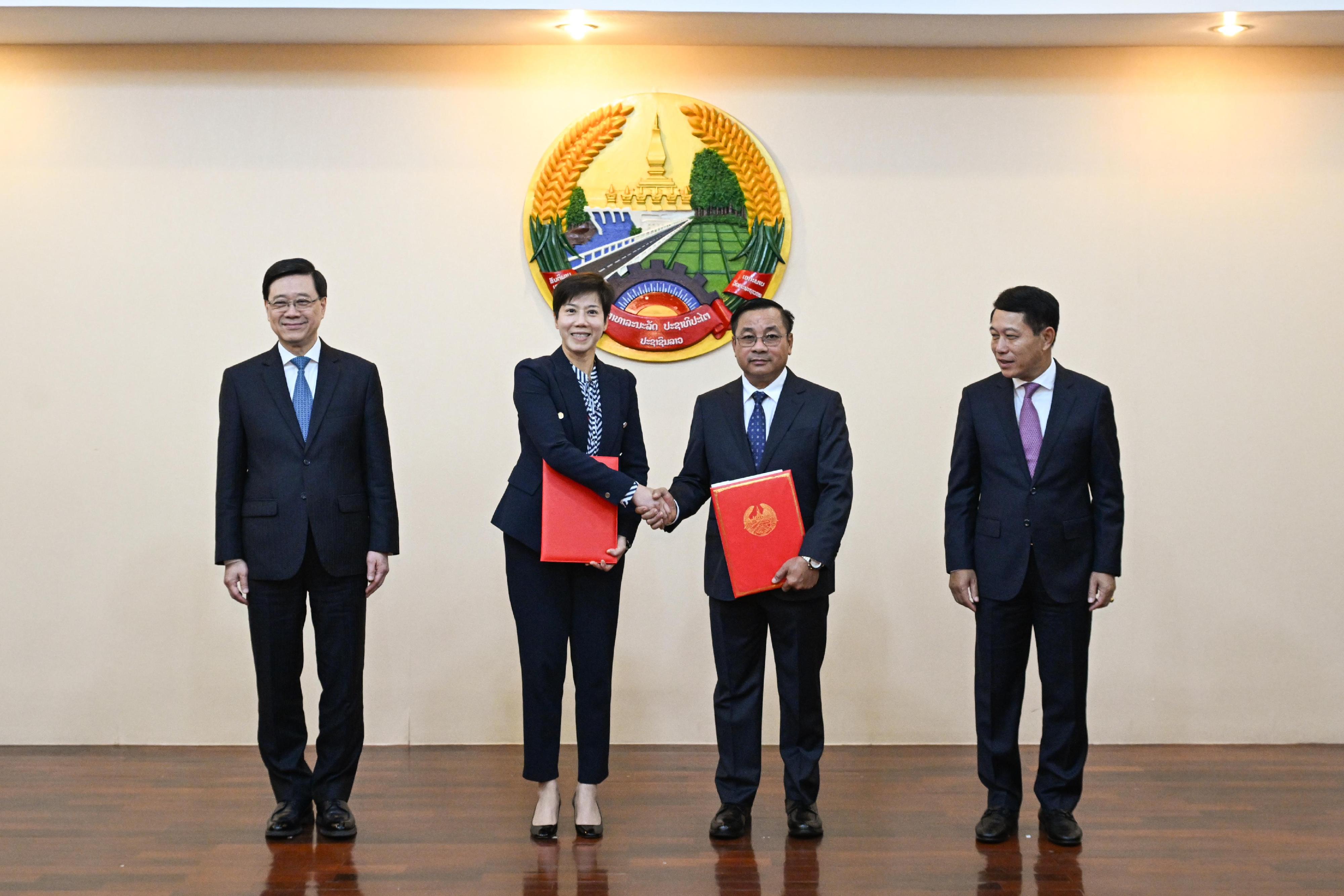 On the same day, witnessed by the Chief Executive, Mr John Lee, and the Deputy Prime Minister and Minister of Foreign Affairs of Laos, Mr Saleumxay Kommasith, Ms Ho also exchanged a Customs Co-operative Arrangement with Mr Vannavongxay for deepening intelligence exchanges and information sharing, cracking down on cross-boundary crimes with joint forces, and facilitating trade.