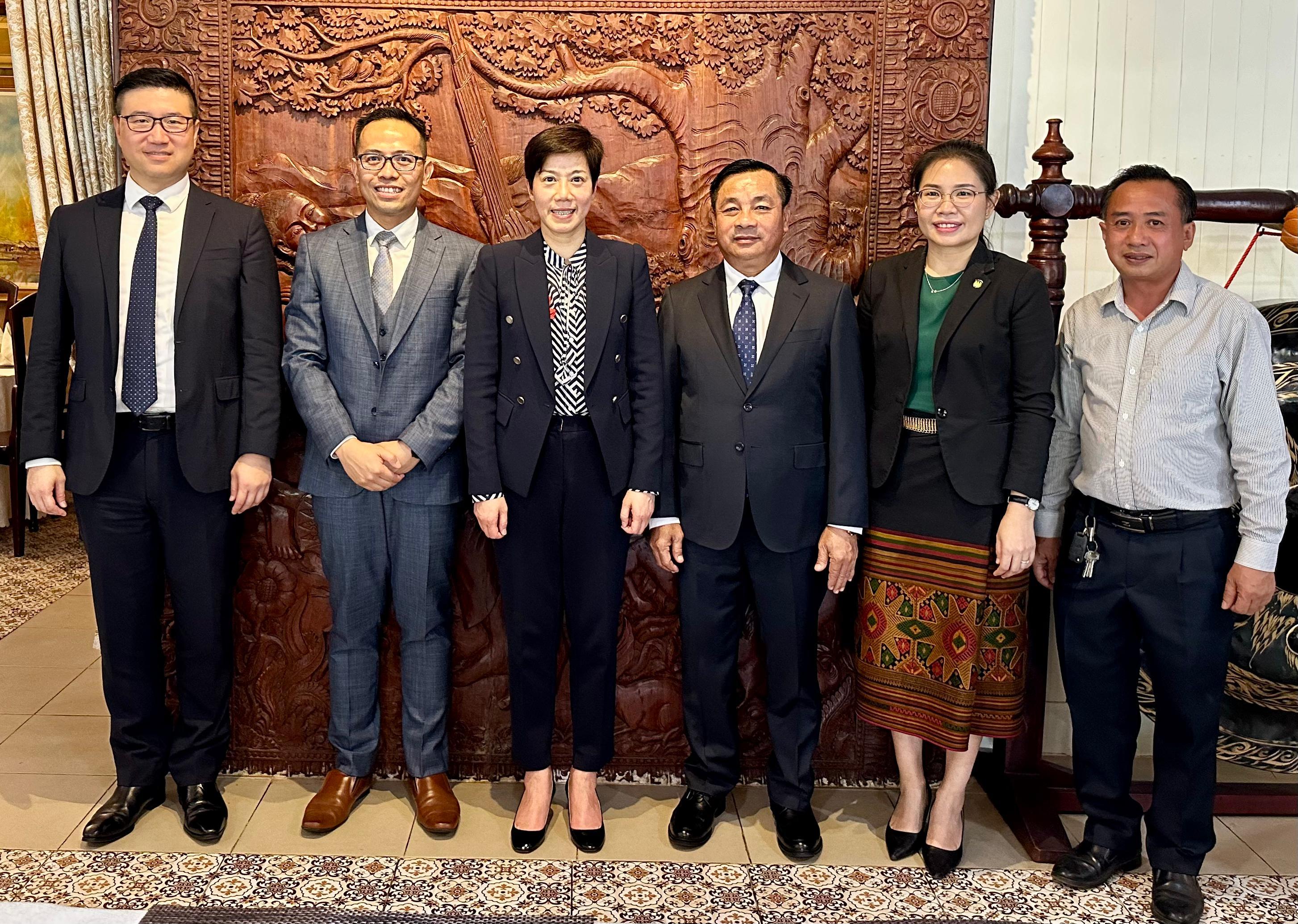 The Commissioner of Customs and Excise, Ms Louise Ho, yesterday (July 29) paid a courtesy call on the Director-General of Lao Customs Department, Mr Phoukhaokham Vannavongxay, in Vientiane, Laos, and was invited to attend a luncheon to exchange views on reinforcing communications and enhancing co-operation.