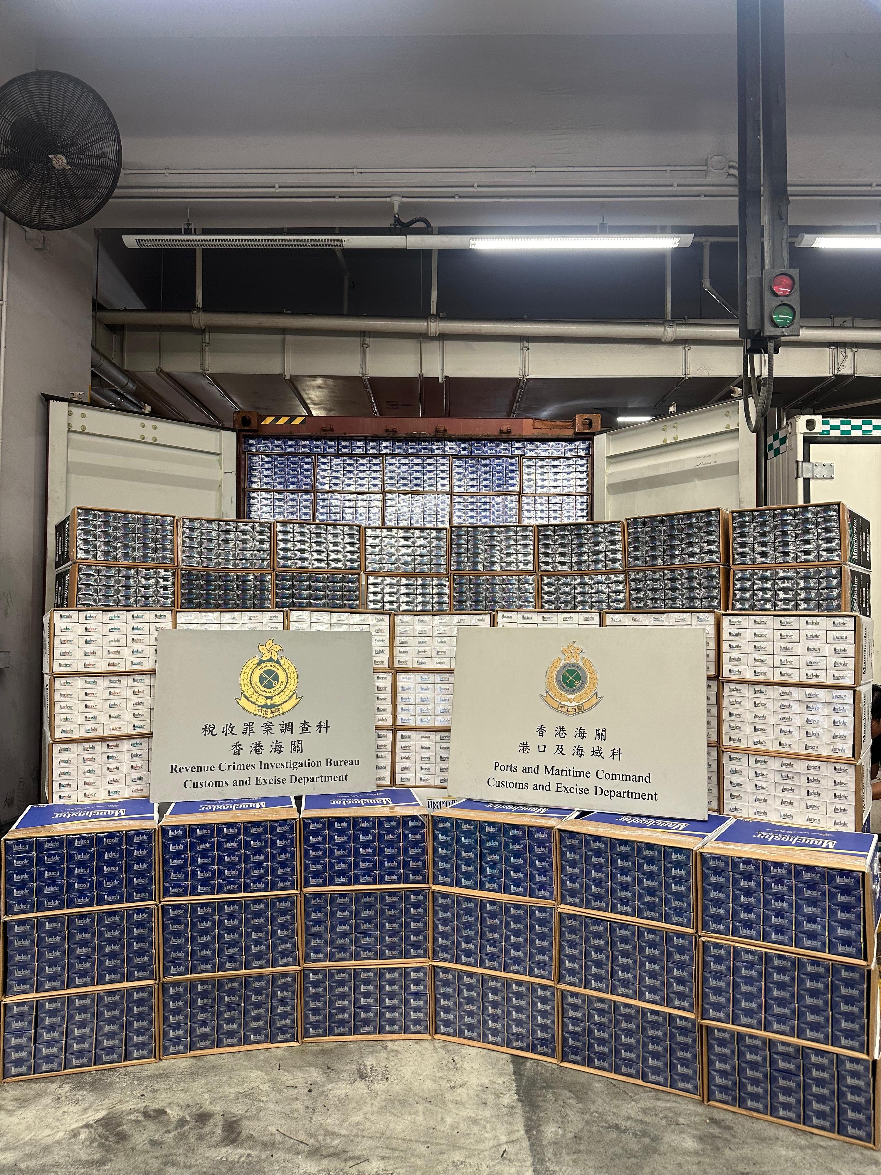 ​Hong Kong Customs detected three illicit cigarette smuggling cases involving seaborne containers on July 11, July 17 and August 7 in Kwai Chung. A total of about 28.5 million suspected illicit cigarettes with an estimated market value of about $128 million and a duty potential of about $94 million were seized.