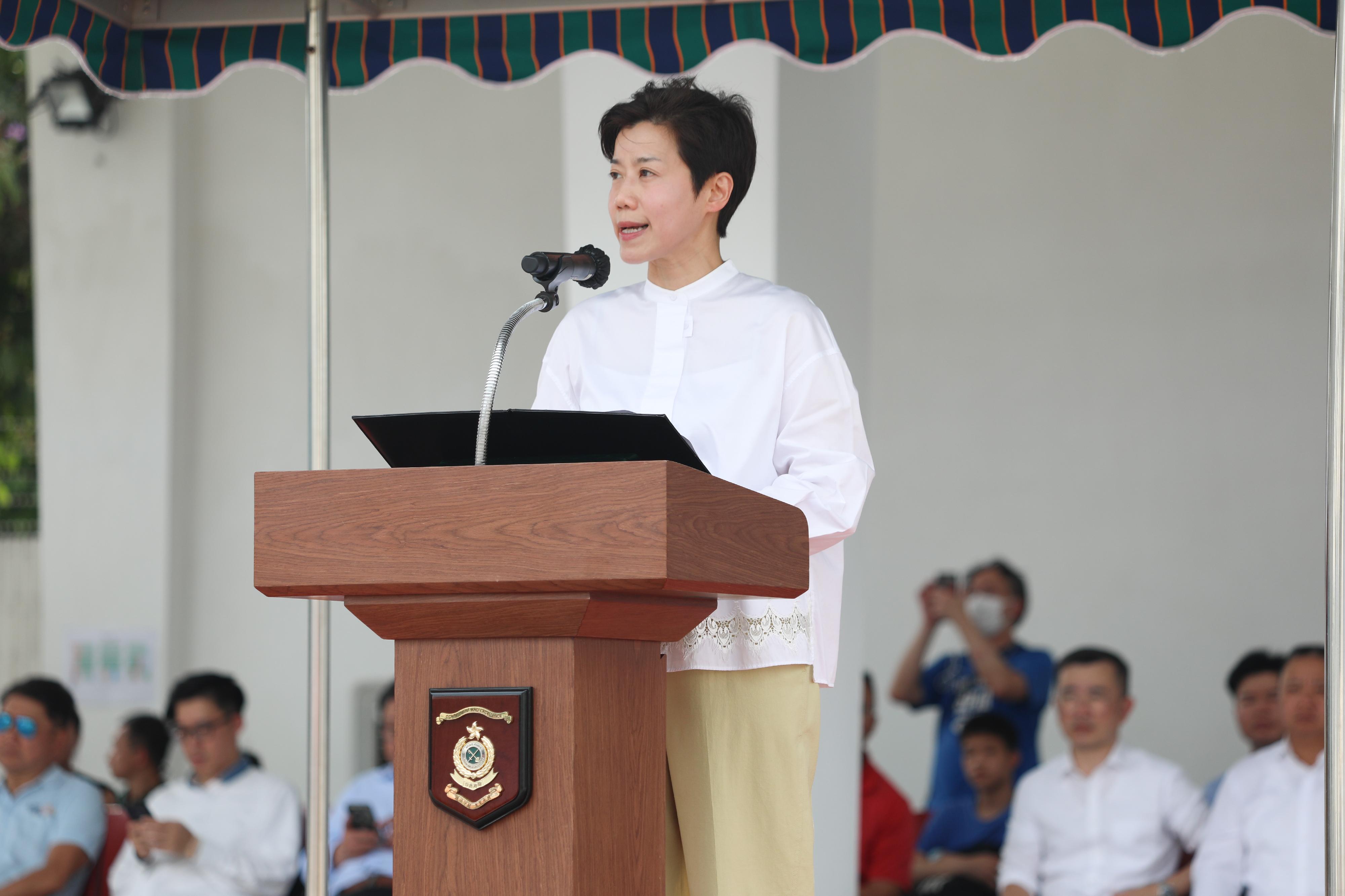 In her welcoming speech at the launching ceremony, Ms Ho said that this exchange tour, in celebration of 75th anniversary of the founding of the People's Republic of China, aims at broadening the horizons, and nurturing the team spirit and innovative thinking of the youth from the three places through visits to Hong Kong, Guangzhou and Macao, laying a solid foundation for their integration into the overall development of the country. She looks forward to the continuous collaboration among Guangzhou, Hong Kong, and Macao in organising cross-regional youth exchange activities, strengthening the cohesion of youth from the three regions and achieving mutually beneficial co-operation. Ms Ho also encouraged the participants to contribute to the prosperity of the country.