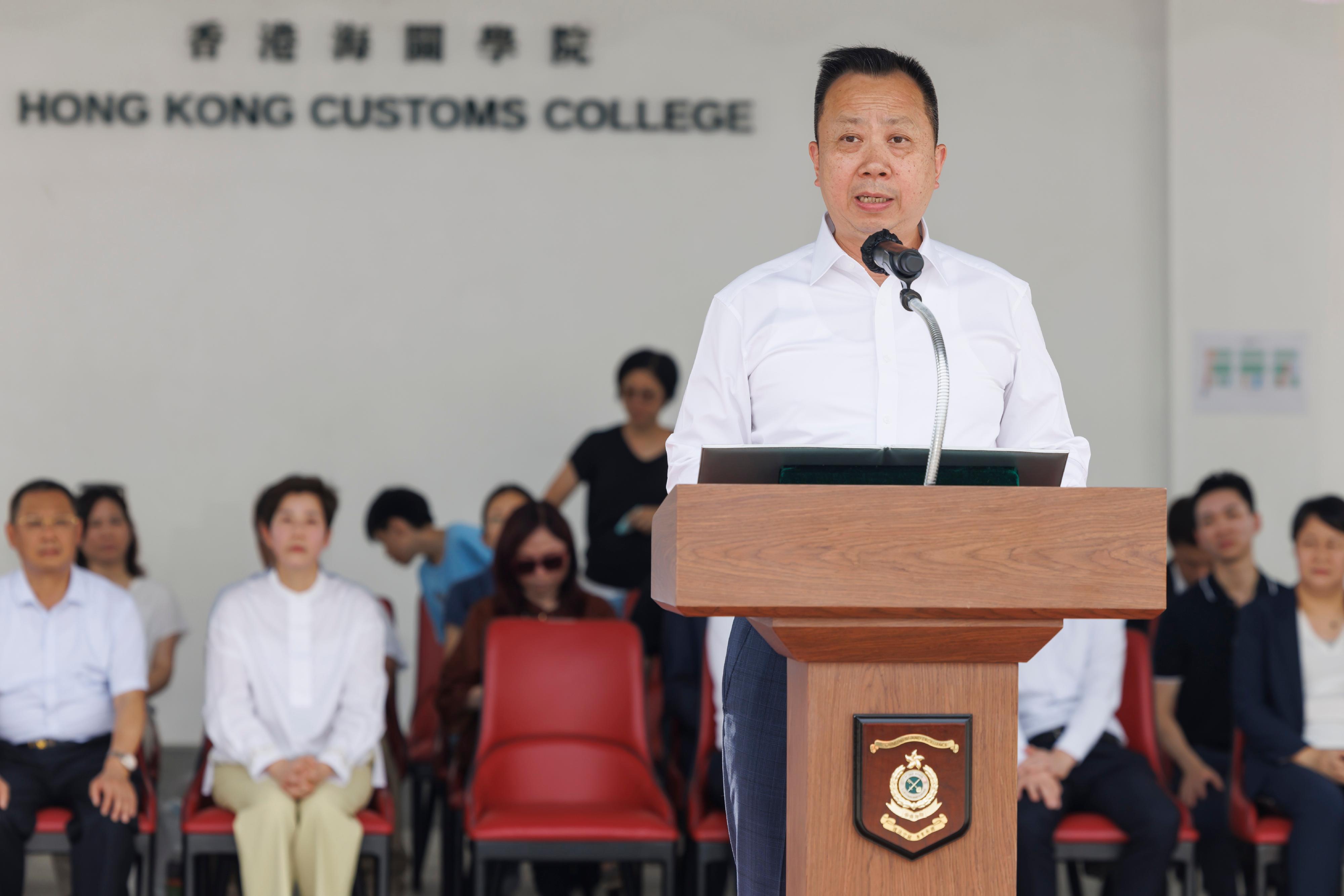 The Commissioner of Customs and Excise, Ms Louise Ho, today (August 10) officiated at the launching ceremony of "Customs YES Guangzhou, Hong Kong, Macao Exchange Tour for Hundred Youths" at the Hong Kong Customs College. Other officiating guests included the Director-general of the Macao Customs Service, Mr Vong Man-chong; Inspector at Level 2 of the Guangdong Sub-Administration of the General Administration of Customs of the People's Republic of China, Mr Yuan Shengqiang; the Under Secretary for Security, Mr Michael Cheuk, and directorates of Hong Kong Customs.