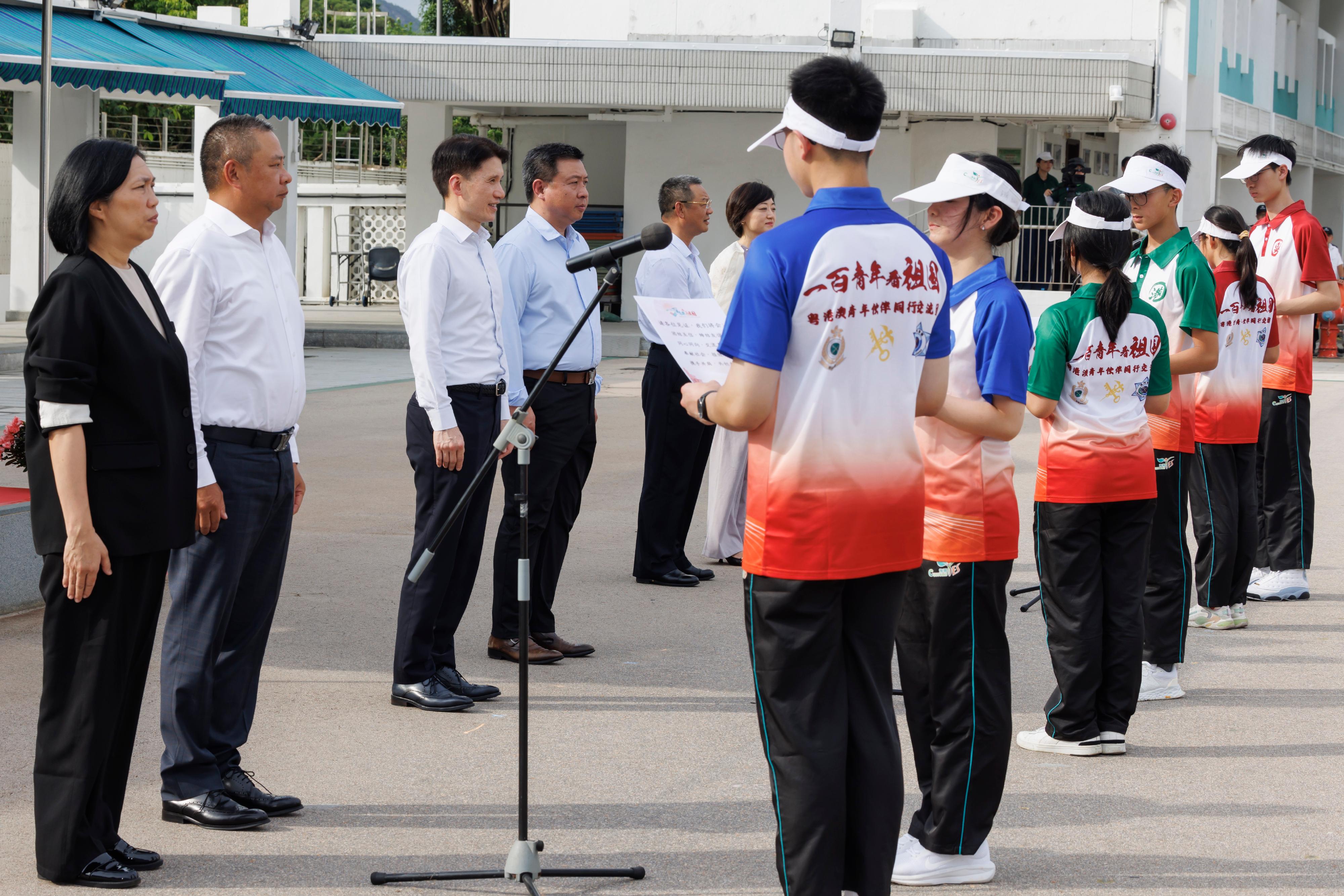 The flag-raising ceremony in the launching ceremony was conducted by the Foot Drill and Flag Party of the Customs Youth Leader Corps, the first youth group under the Security Bureau to perform Chinese-style rifle foot drill. This performance marks the team's first public flag-raising demonstration, showcasing a high level of discipline and team spirit, and respect for the country, of the members.