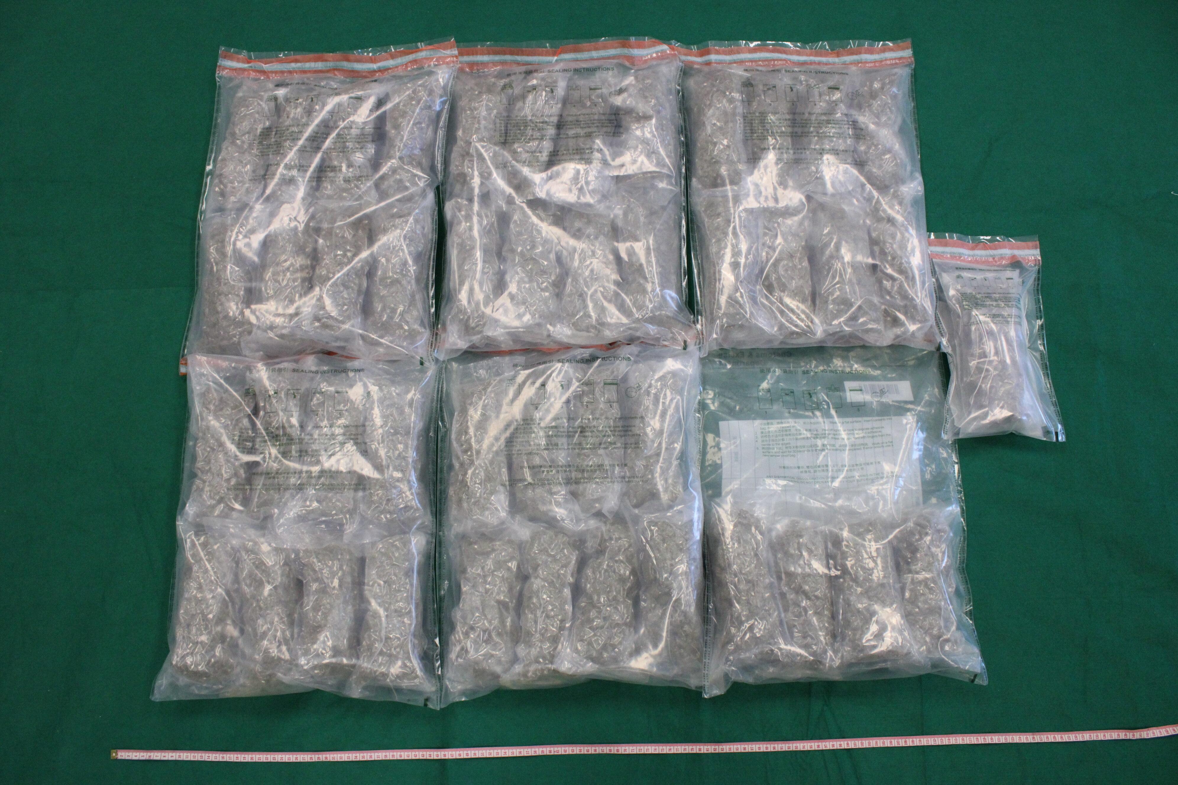 In the first case, through intelligence analysis and in-depth investigation, Customs targeted a man who was suspected of controlling two drug storage centres in Yau Tong and arrested him in Lok Ma Chau yesterday afternoon. Customs officers then escorted the man to two mini-storage centres in Yau Tong for a search and found about 11kg of suspected cannabis buds and a batch of drug packaging paraphernalia in each of the mini-storage centres. A total of 22kg of suspected cannabis buds were seized in the operation. The arrested man, aged 32 and claiming to be a driver, has been charged with two counts of trafficking in a dangerous drug. He will appear at the Shatin Magistrates' Courts tomorrow (September 14).