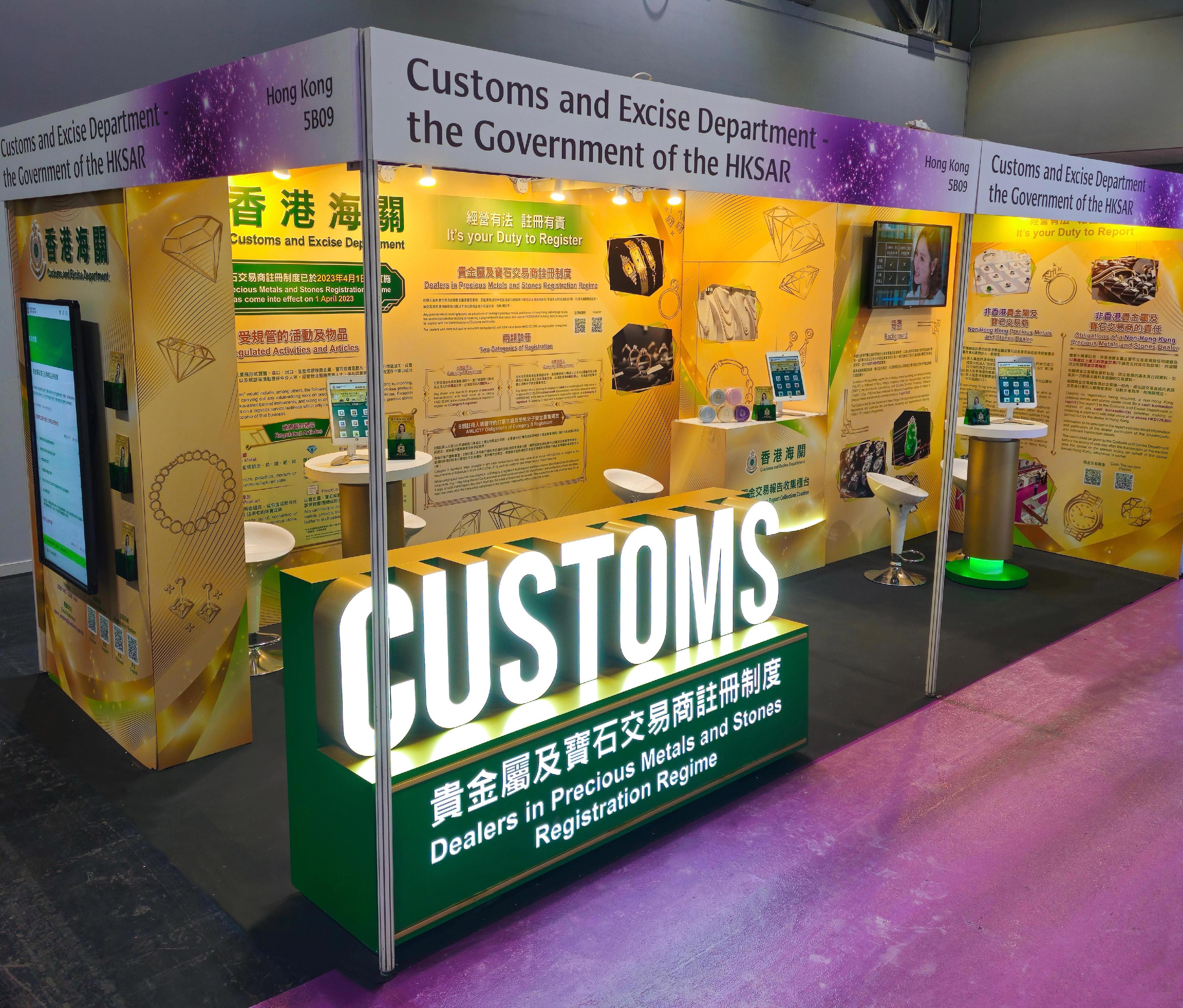 Hong Kong Customs will set up a booth at the Jewellery & Gem WORLD Hong Kong (JGW), to be held at the AsiaWorld-Expo, from tomorrow (September 16) for five consecutive days to publicise the Dealers in Precious Metals and Stones Regulatory Regime (the Regime), and will provide on-site counter services to assist non-Hong Kong dealers in submitting cash transaction reports during their participation in the exhibition.