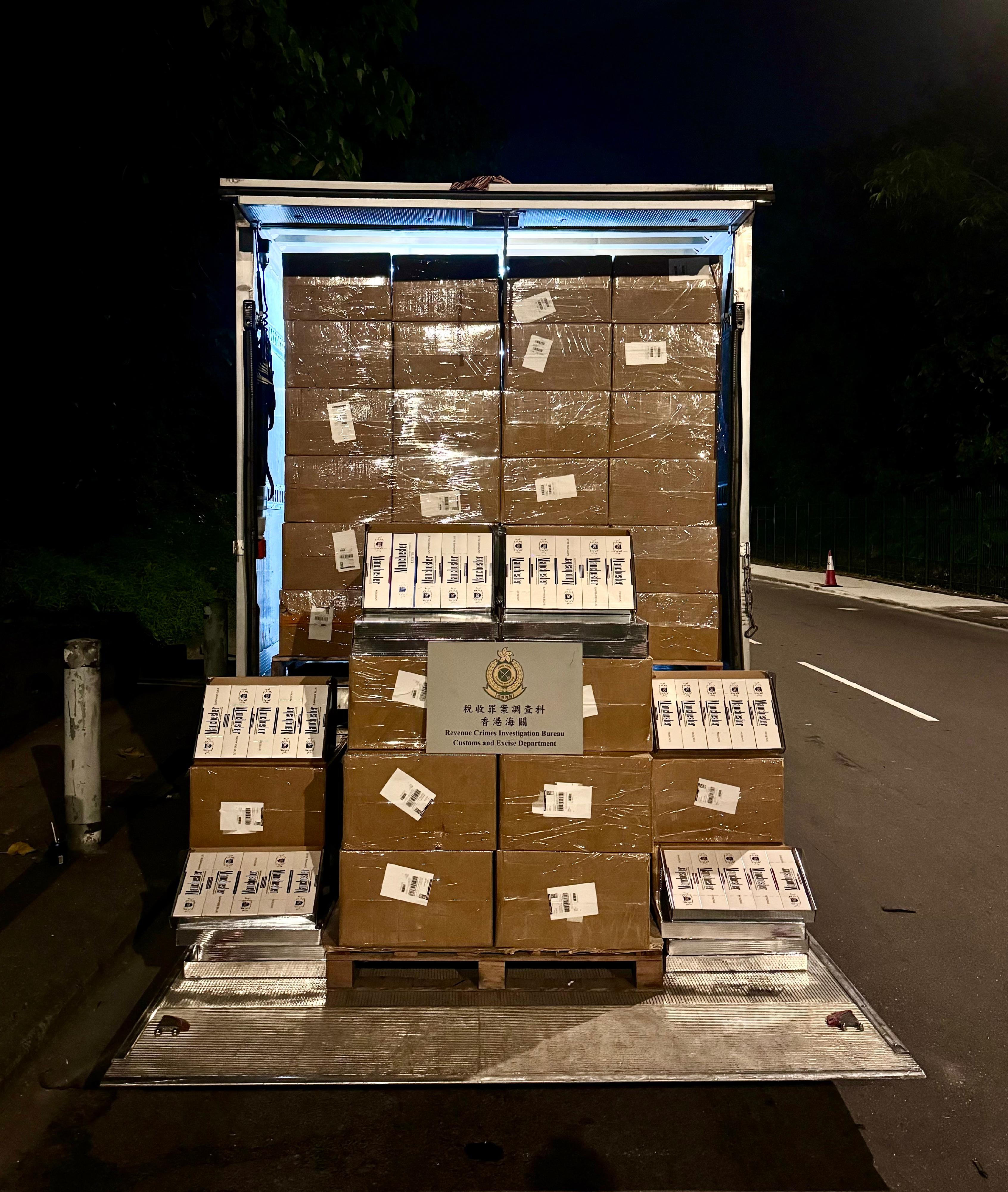 Hong Kong Customs yesterday and today (October 8 and 9) detected two suspected illicit cigarette distribution cases in Kwai Chung and Wong Tai Sin. A total of about 1.27 million suspected illicit cigarettes, with a total estimated market value of about $5.74 million and a duty potential of about $4.2 million, were seized.