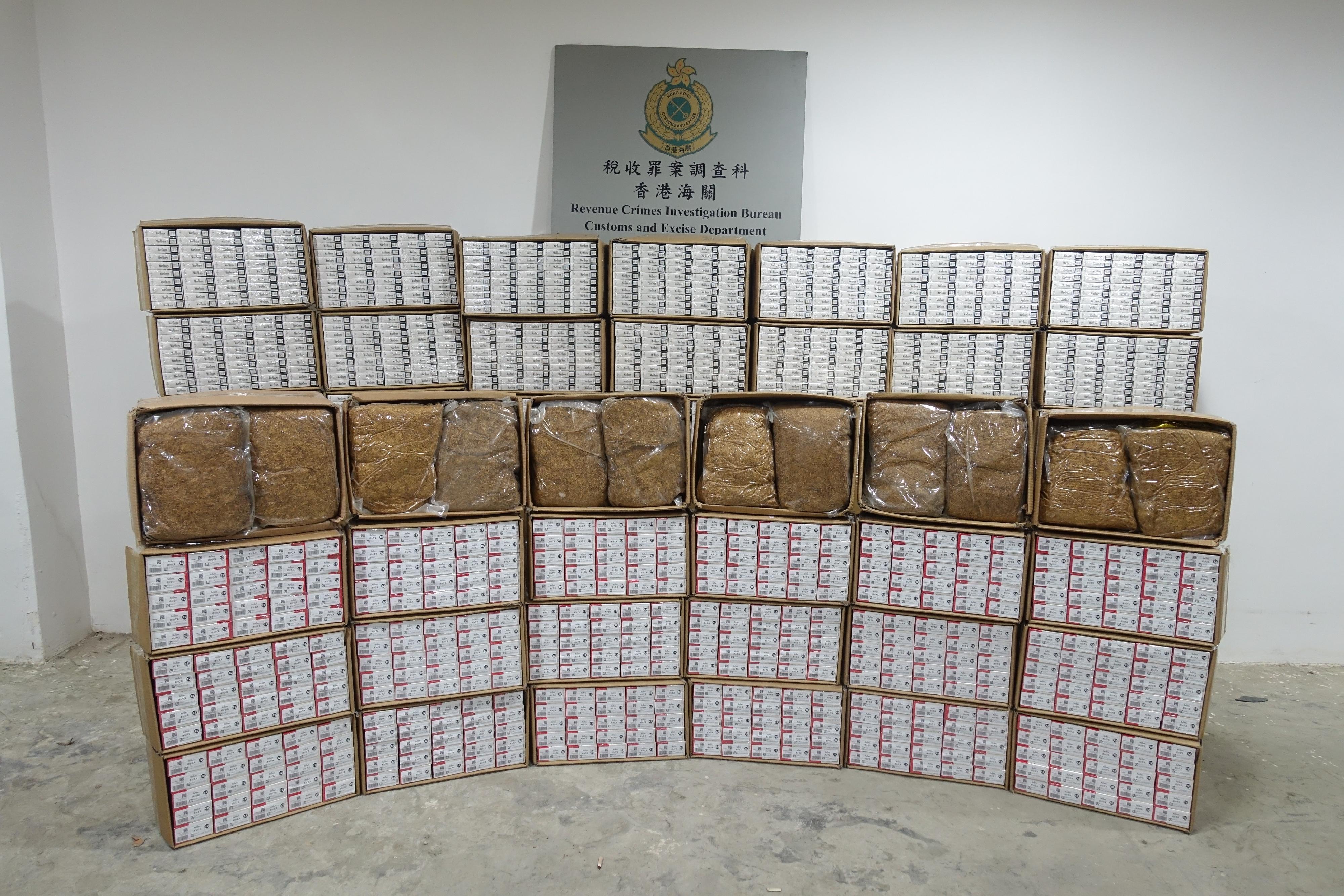 Hong Kong Customs yesterday (October 9) raided a suspected illicit cigarette and manufactured tobacco storage centre in Tsuen Wan and seized about 2.3 million suspected illicit cigarettes and about 280 kilograms of suspected duty-not-paid manufactured tobacco, with an estimated market value of about $12.3 million and a duty potential of about $8.8 million.