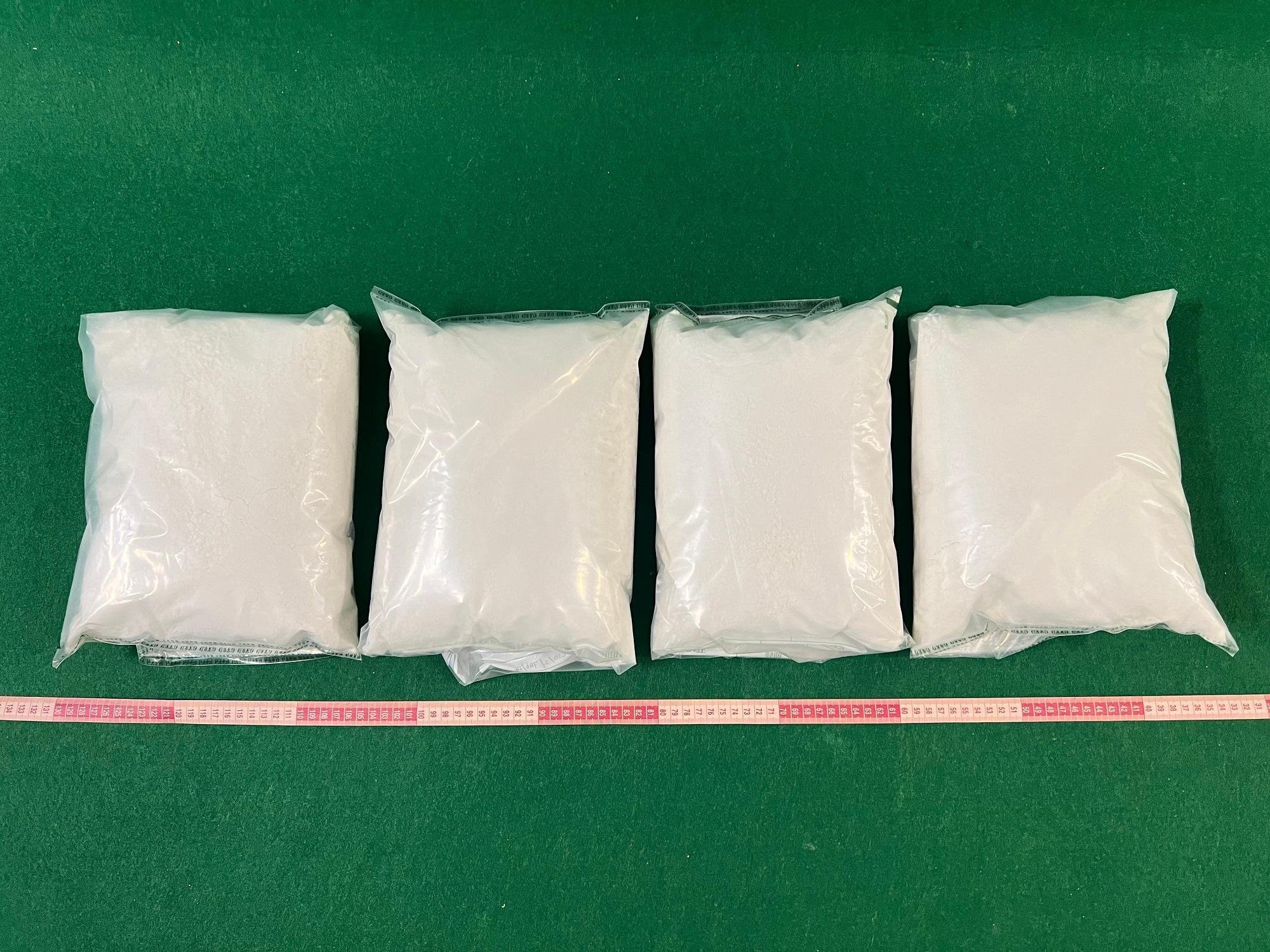 The first case involved one male passenger and one female passenger, aged 64 and 59, who arrived in Hong Kong from Paris, France, on October 27. During customs clearance, Customs officers seized a total of about 8kg of suspected cocaine concealed in their check-in suitcases. The two persons were subsequently arrested.
