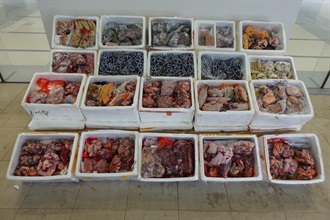 Hong Kong Customs mounted the third phase of the enforcement operation against food smuggling codenamed "Ice Breaker" in November this year. On November 5, Customs detected one related case and seized approximately 300 kilograms of frozen meat and 1 000kg of other food items with a total estimated market value of about $100,000.