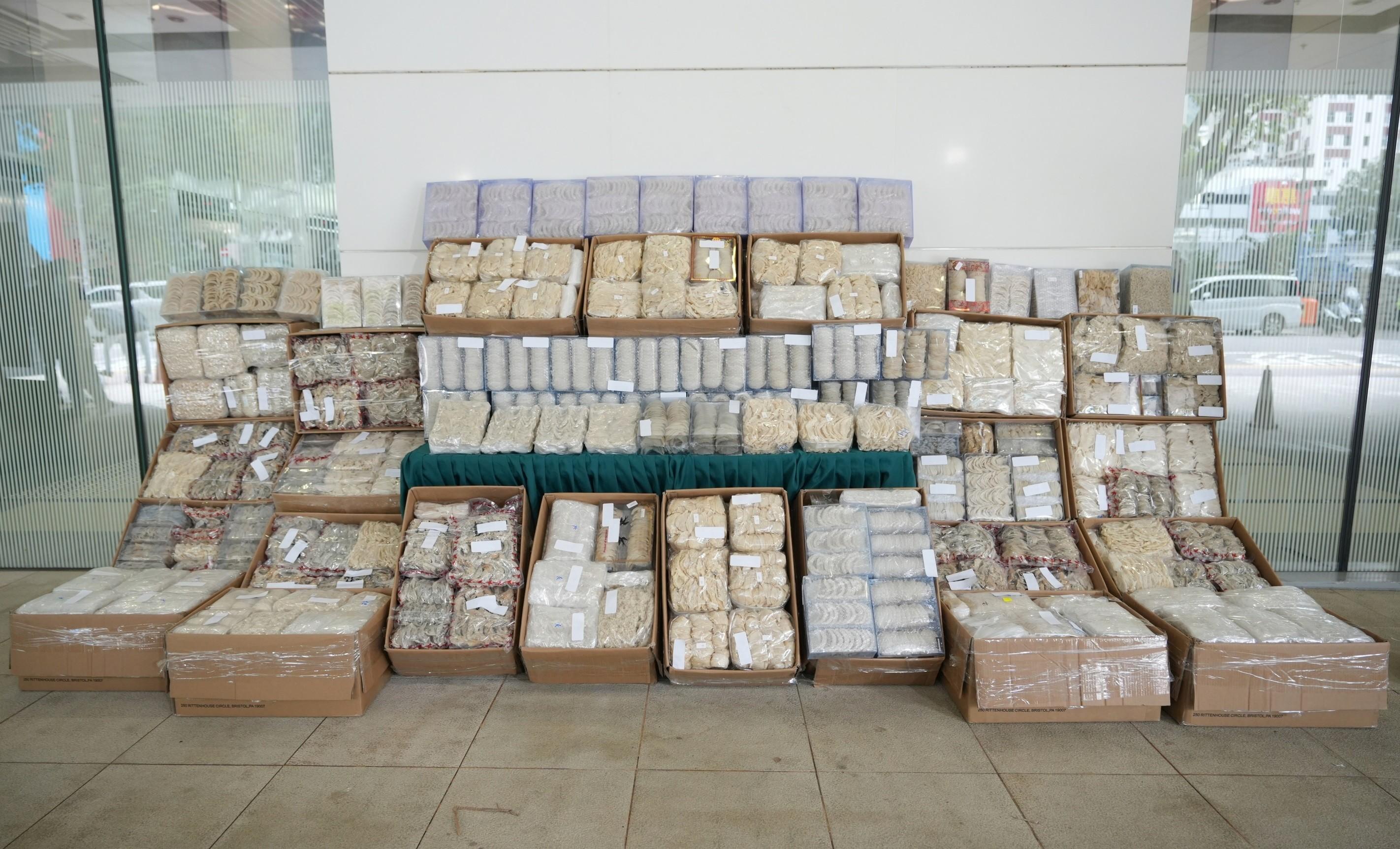 Hong Kong Customs on November 20 detected a suspected smuggling case involving a cross-boundary goods vehicle at the Lok Ma Chau Control Point and seized about 438 kilograms of suspected smuggled bird's nests with an estimated market value of about $32 million. This is the largest on record among bird's nests smuggling cases detected by Customs at land boundary control points in terms of the market value of the seizure.