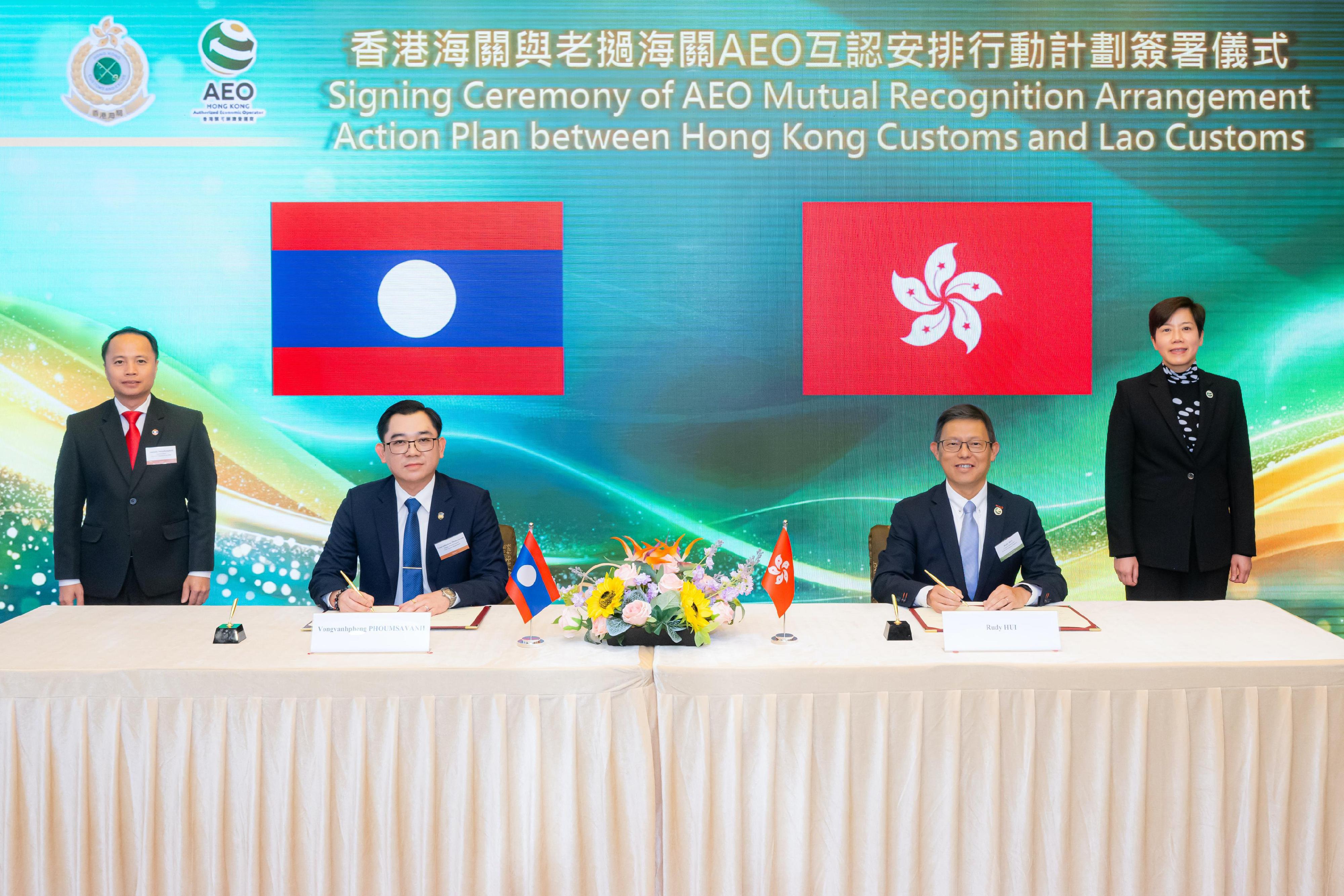 In addition, witnessed by the Commissioner of Customs and Excise, Ms Louise Ho, and the Consul General of Laos, Mr Ammala Saenchonghack, the Assistant Commissioner (Excise and Strategic Support) of Customs and Excise, Mr Rudy Hui, and the Deputy Director-General of Lao Customs, Mr Vongvanhpheng Phoumsavanh, signed the Action Plan for the AEO MRA, marking a significant step towards the conclusion of the MRA.