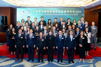 The Customs and Excise Department (C&ED) held the Hong Kong Authorized Economic Operator (AEO) Certificate Presentation Ceremony 2024 today (November 29) at the Customs Headquarters Building and presented AEO Certificates and Hong Kong AEO Programme Partnership Scheme Awards to Hong Kong AEOs. A signing ceremony of the AEO Mutual Recognition Arrangement (MRA) Action Plan between Hong Kong Customs and Lao Customs was also held.