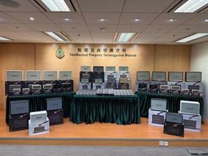 Customs earlier received information alleging that suspected counterfeit speakers and wireless headphones were on sale in a chain retail group. After an in-depth investigation and with the assistance of the trademark owner, Customs officers took enforcement action yesterday and raided the group's eight branches across the territory as well as an industrial unit in Kowloon. A batch of suspected counterfeit speakers and wireless headphones was seized.