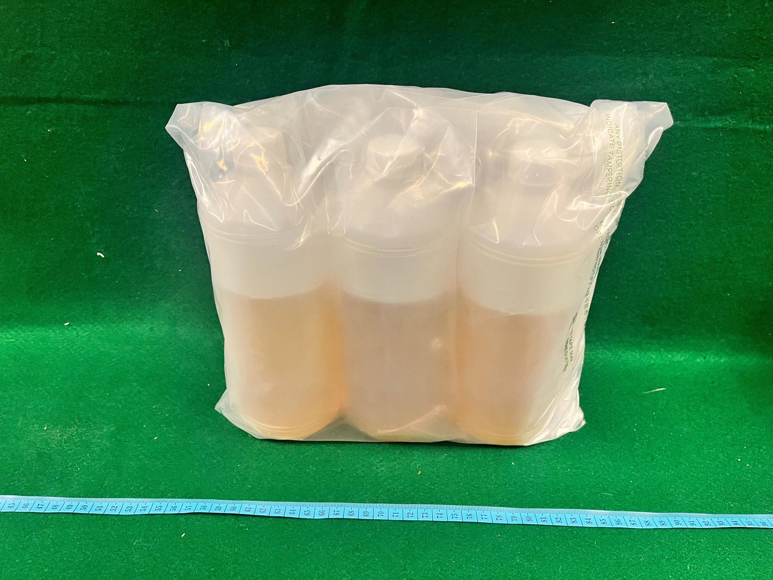 Through intelligence analysis and in-depth investigations, Customs on January 3 inspected a parcel posted from Guangzhou and declared as carrying acrylic boards at the Hong Kong-Zhuhai-Macao Bridge Hong Kong Port. Upon examination, a total of about 2.4kg of suspected liquid cocaine was found concealed inside the hollow space of three acrylic boards in the parcel.