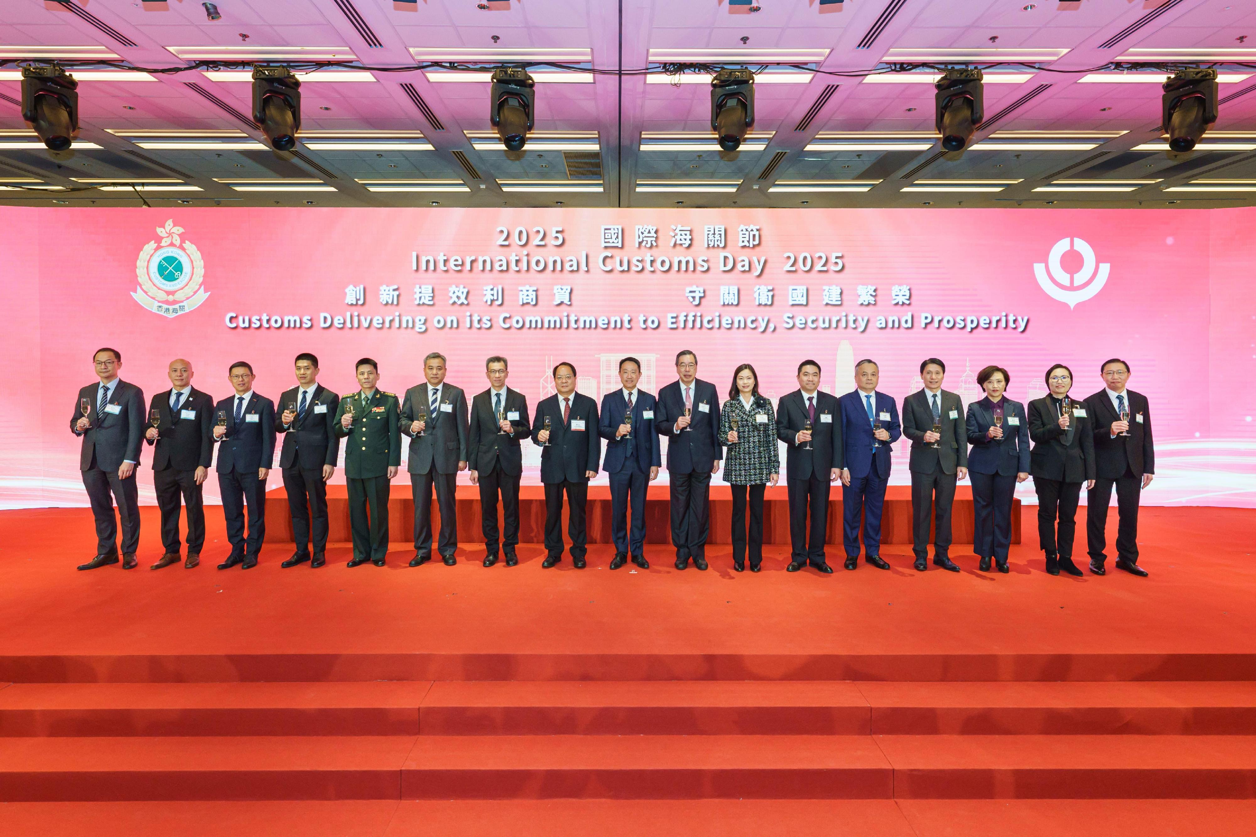 Officiated by Deputy Commissioner of the Office of the Commissioner of the Ministry of Foreign Affairs of the People's Republic of China in the Hong Kong Special Administrative Region Mr Pan Yundong and the Commissioner of Customs and Excise, Mr Chan Tsz-tat, a reception in celebration of International Customs Day (ICD) 2025 was held by Hong Kong Customs at the Hong Kong Convention and Exhibition Centre today (January 21).