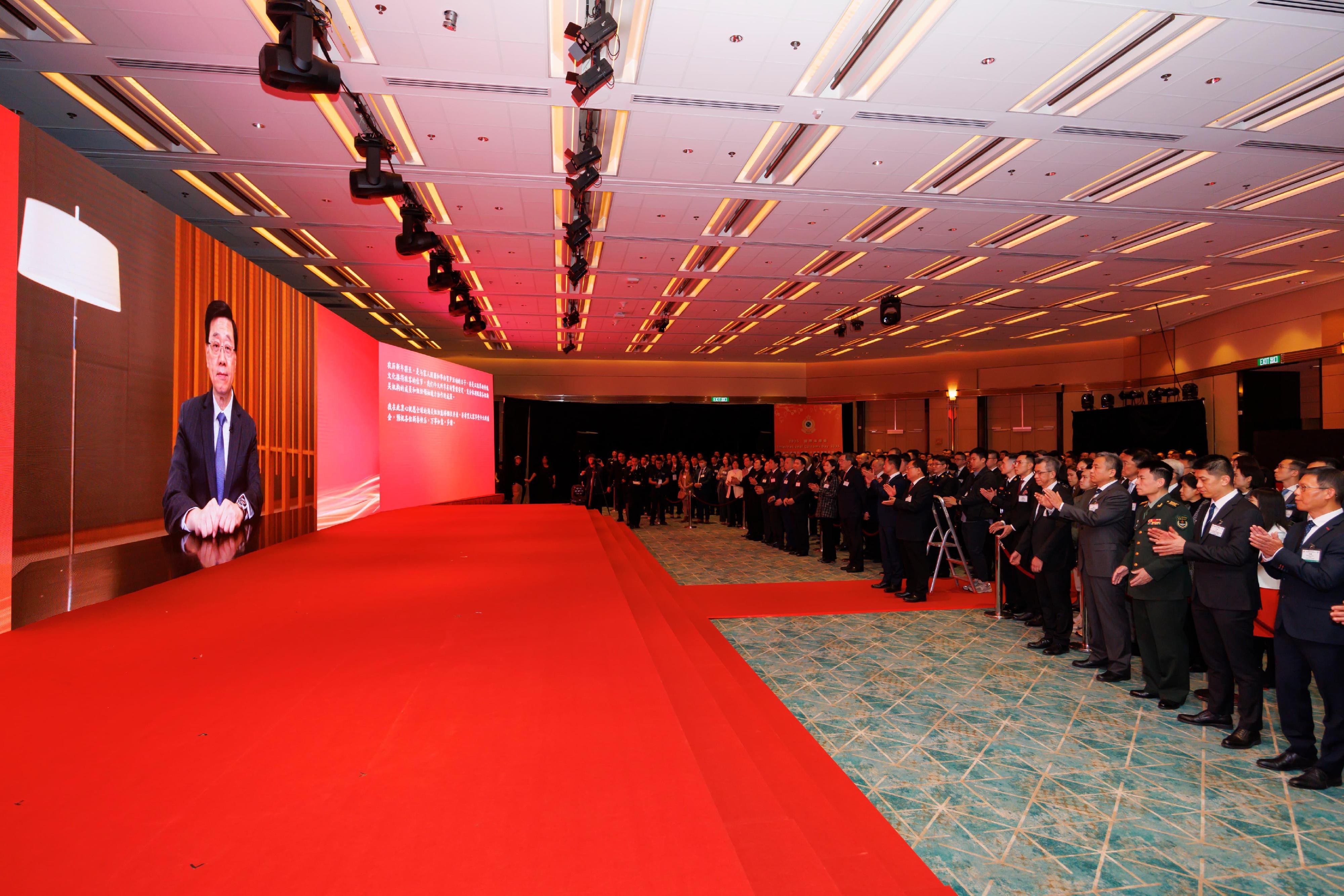 The Chief Executive, Mr John Lee, delivered a pre-recorded speech to express his appreciation for the unwavering dedication of Hong Kong Customs in shaping Hong Kong into a world city and trade hub. He emphasised that under the "one country, two systems" principle, Hong Kong enjoys both the China advantage and the global advantage. He expressed his confidence that Hong Kong Customs will continue to promote international co-operation and enhance Hong Kong's roles as a "super connector" and "super value-adder" between the Mainland and the world.