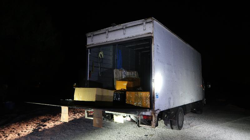 Customs officers conducted an anti-smuggling operation in Lau Fau Shan on that day and spotted several suspicious men on the shore moving cartons from a lorry to a speedboat using a ladder with metal rollers. The officers then took action and those men immediately jumped onto the speedboat and fled.