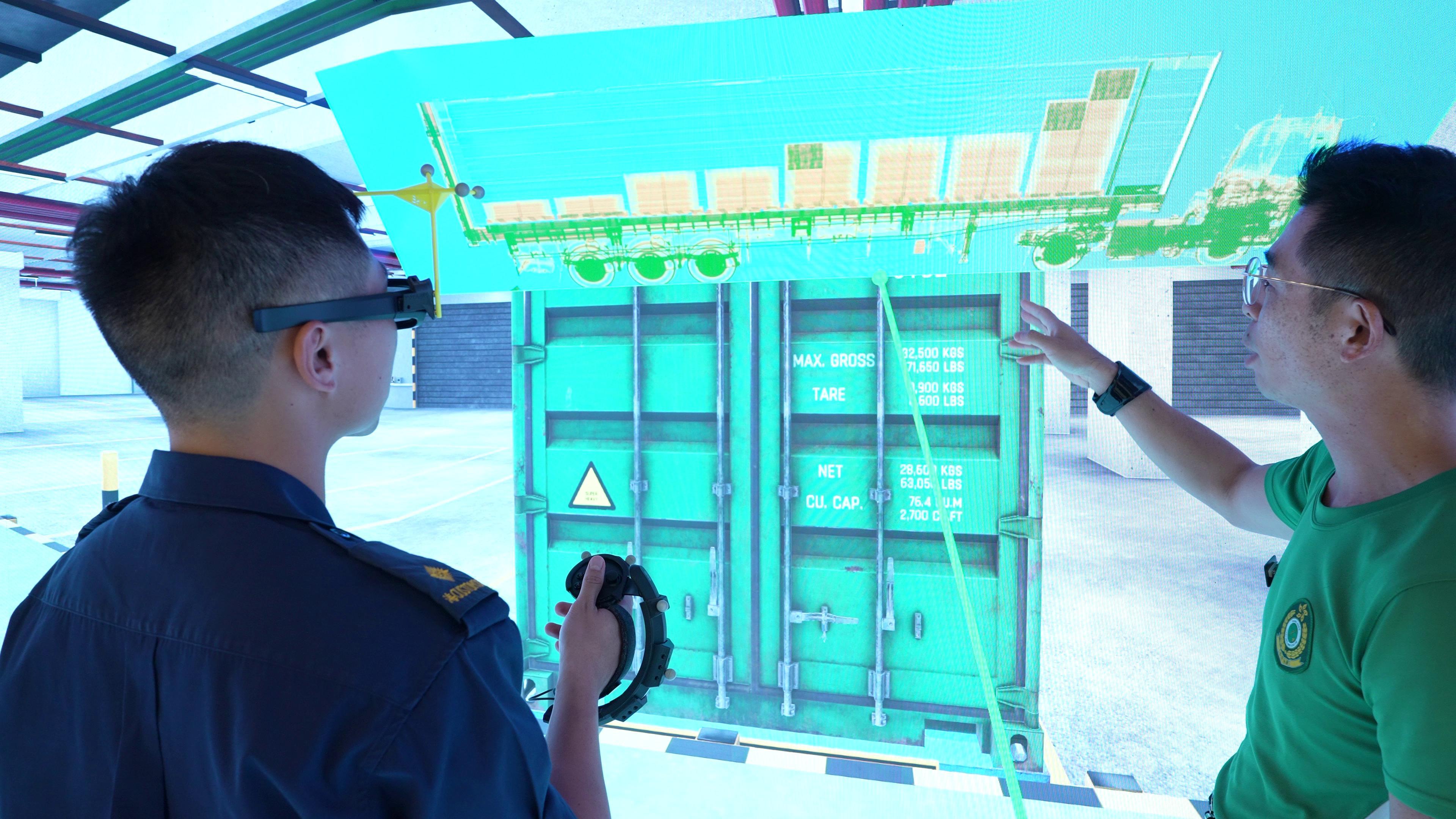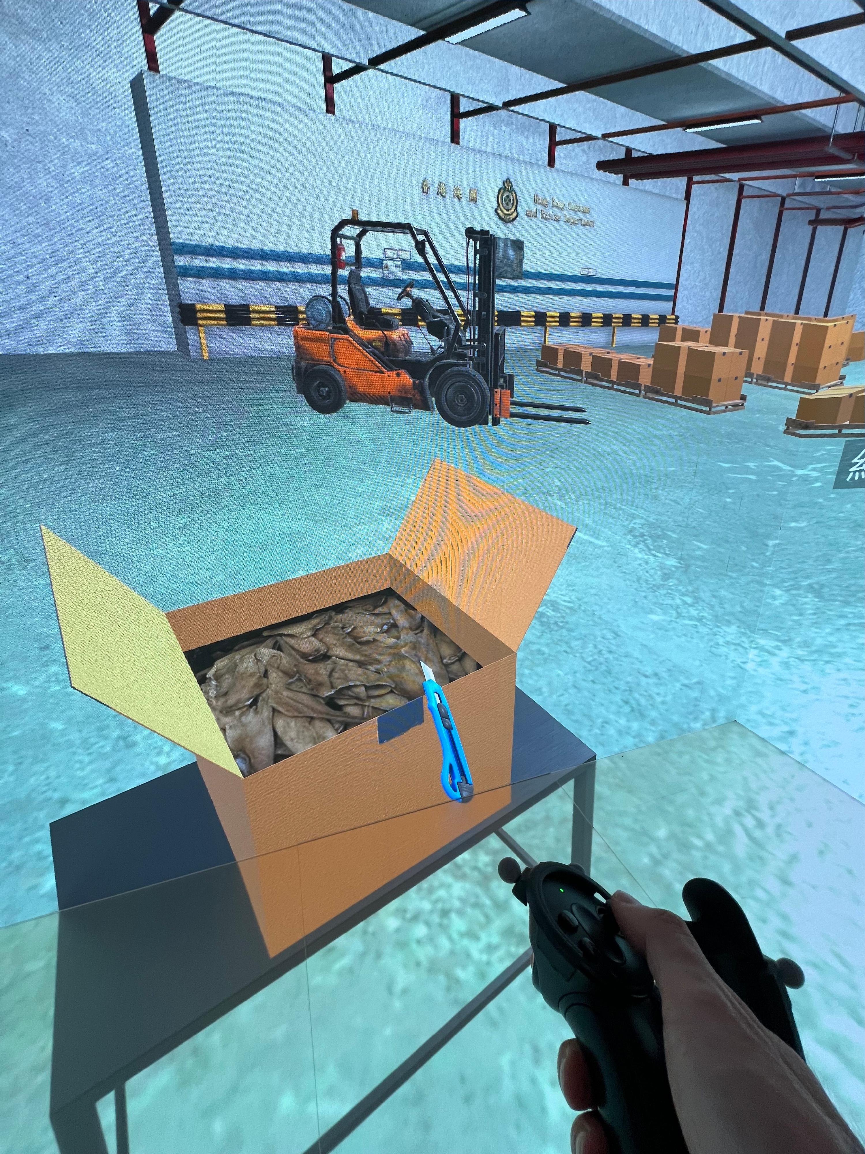 CAVE, launched in 2023, employs advanced virtual reality technology to create interactive training modules that simulate various customs clearance scenarios, providing customs trainees with an immersive training experience. This innovative training method allows trainees to learn basic customs clearance skills under a controlled environment and enables instructors to adjust the training modules according to the training progress and smuggling trends, thereby strengthening the trainees' adaptability. CAVE has now been fully introduced to all induction and in-service training provided by Hong Kong Customs College, and a total of more than 600 officers have received the training.
