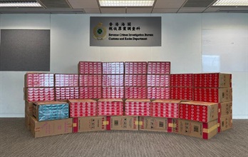 During an anti-illicit cigarette operation conducted in Fanling yesterday evening, Customs officers seized the batch of suspected illicit cigarettes at an industrial building unit. A 41-year-old man suspected to be in connection with the case was arrested.
