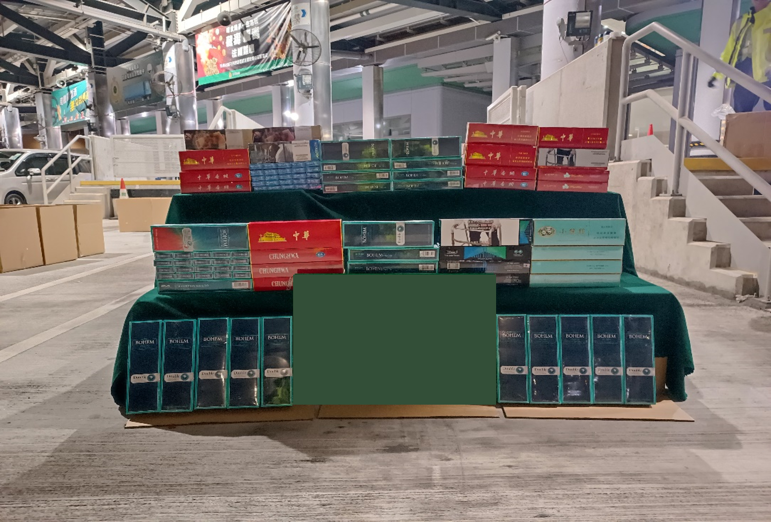 Based on risk assessment and intelligence analysis, Customs officers and police officers of the Airport Police District mounted a joint anti-illicit cigarette operation on January 17 at the Hong Kong-Zhuhai-Macao Bridge Hong Kong Port and intercepted an inbound private car which was declared to be empty. Upon inspection, Customs officers seized about 30 000 duty-not-paid cigarettes from the hollow spaces of the doors, under the seats, in the centre console and the rear compartment. The driver was subsequently arrested and the private car was also seized. The estimated market value of the duty-not-paid cigarettes seized in the case was about $150,000 and the duty potential was about $99,000.