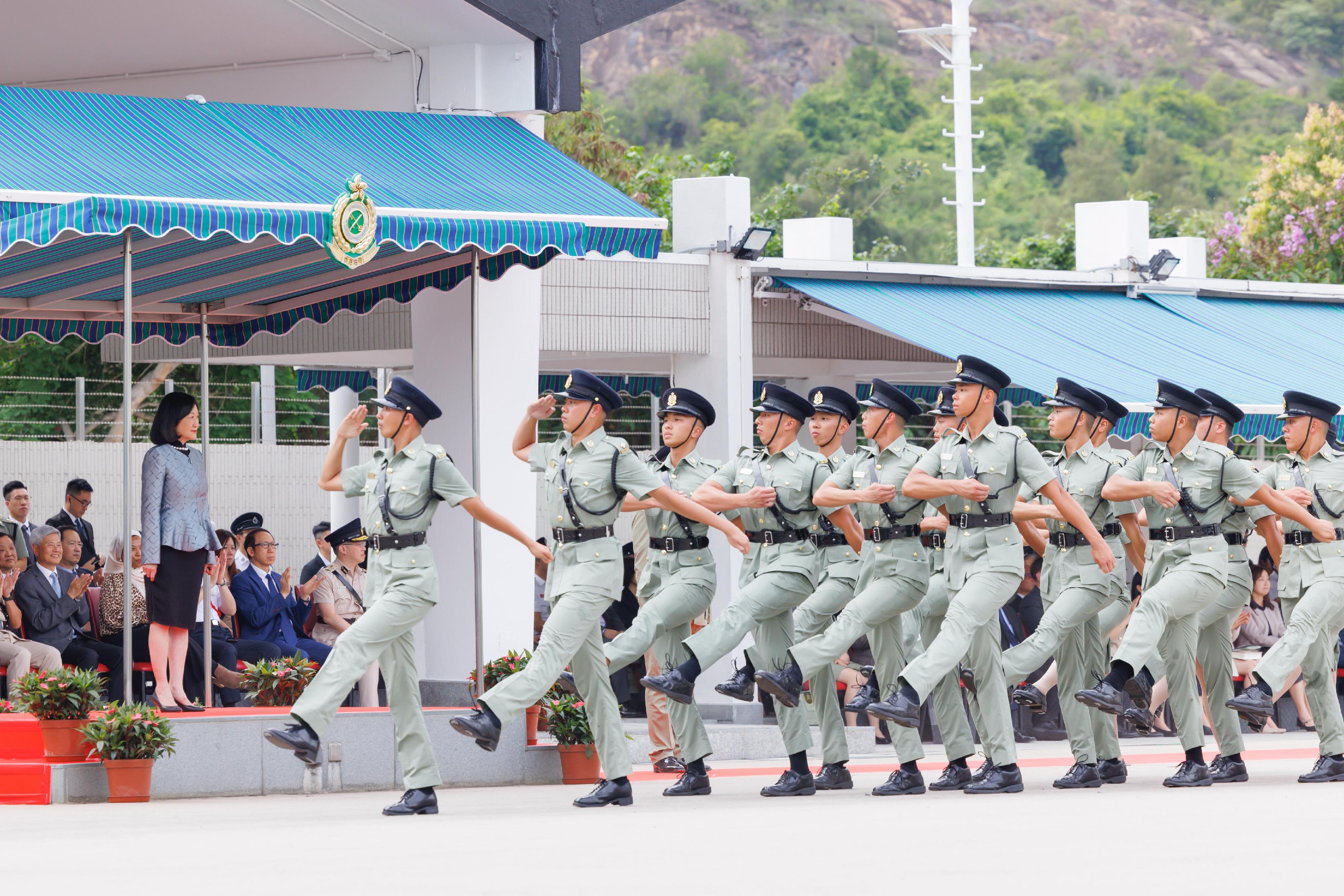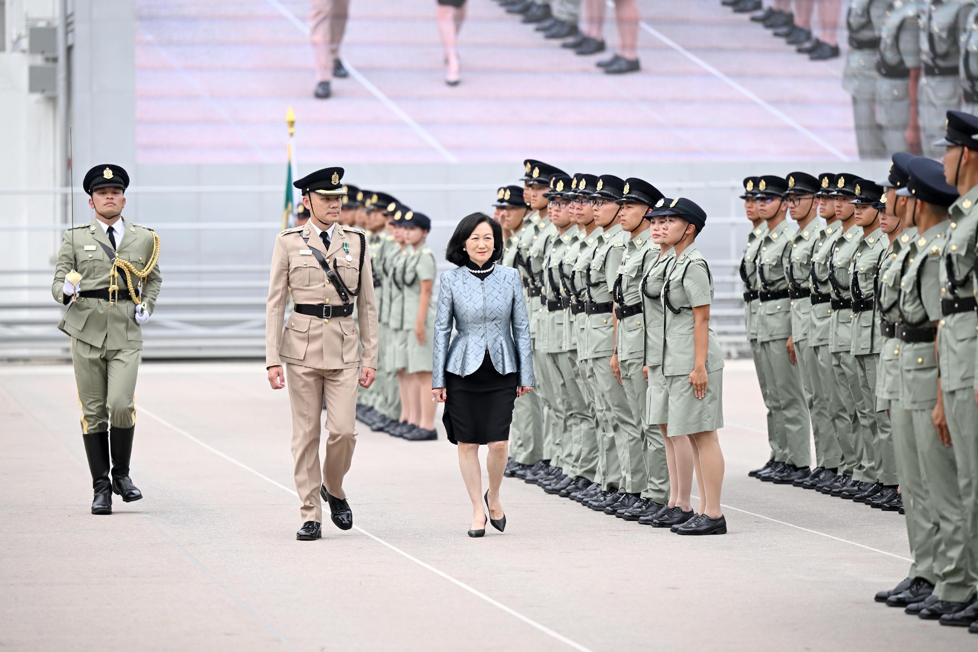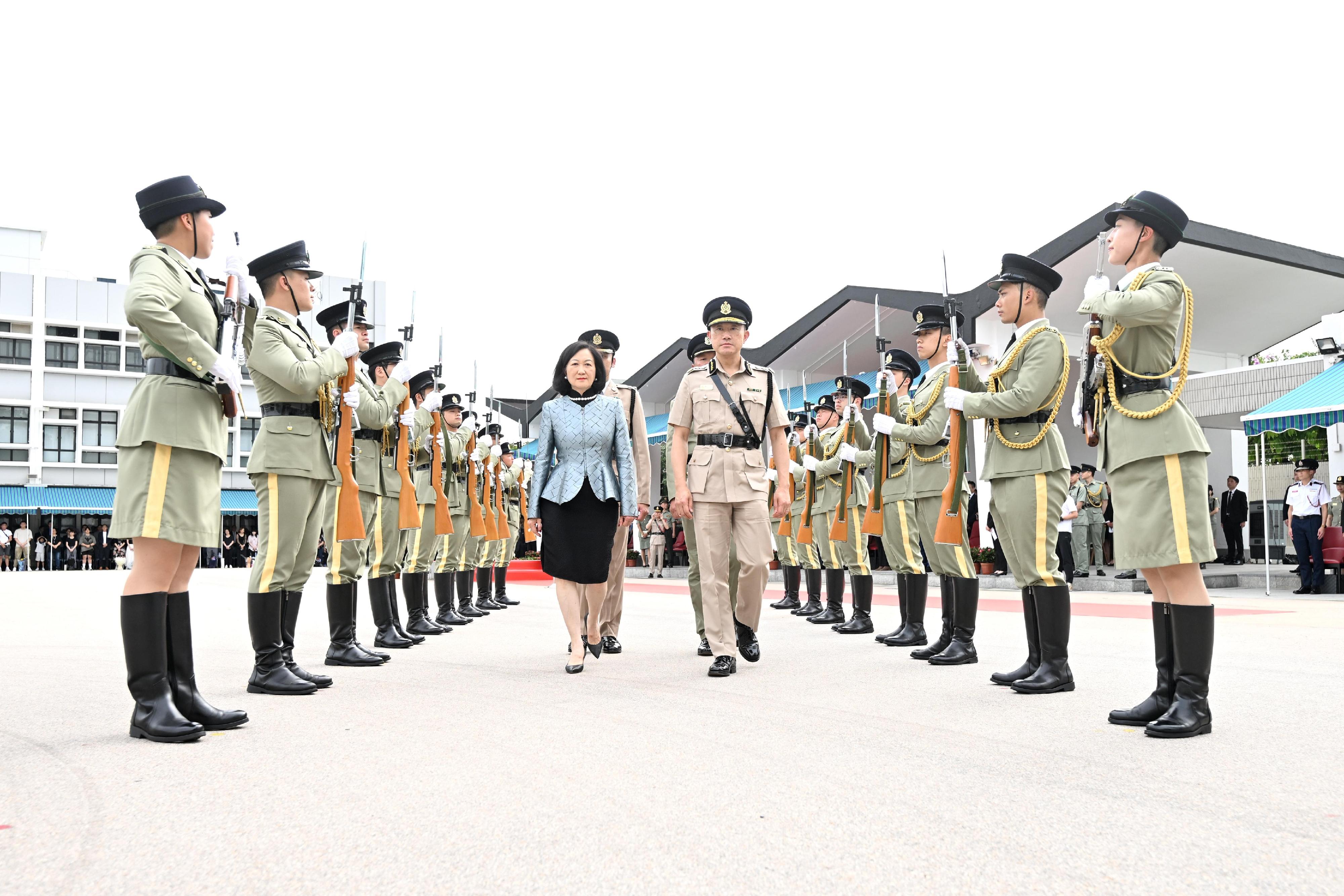 The Convenor of the Non-official Members of the Executive Council (ExCo), Mrs Regina Ip, attended the Passing-out Parade for the 144th Inspector Induction Course and the 502nd-507th Customs Officer Induction Courses at the Hong Kong Customs College today (June 5) to inspect 11 Probationary Customs Inspectors and 128 Probationary Customs Officers on parade.