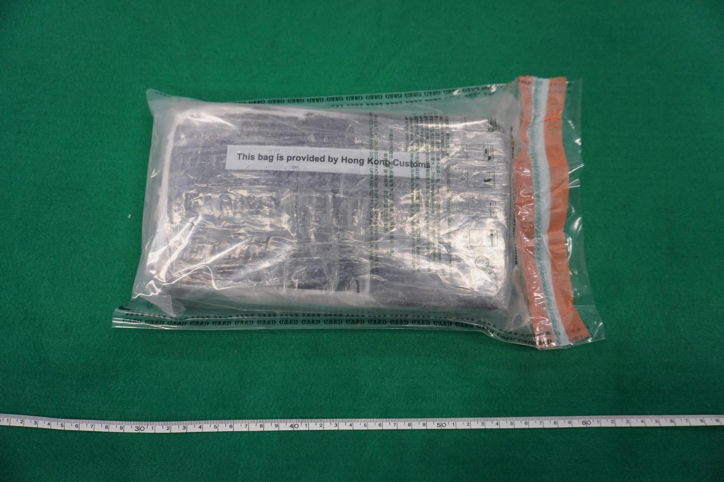 During an anti-narcotics operation conducted in Hung Hom yesterday afternoon, Customs officers intercepted a suspicious man and seized about 1.3kg of suspected cocaine inside a rucksack carried by him. The man was subsequently arrested. Customs officers later escorted him to a residential premises nearby for a search and further seized a batch of suspected drug packaging paraphernalia.