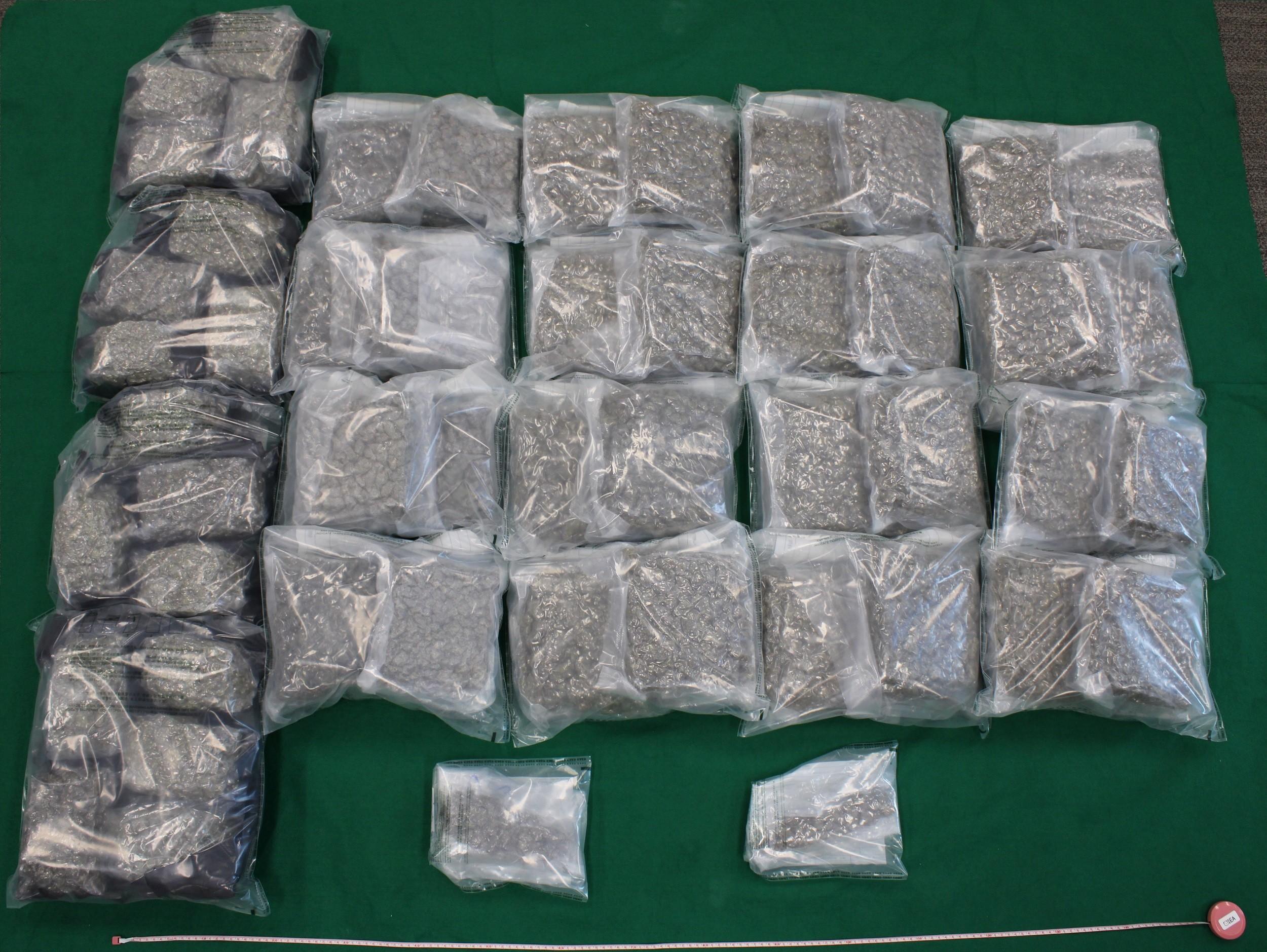 Hong Kong Customs yesterday (August 12) detected a drug trafficking case at the Hong Kong-Zhuhai-Macao Bridge (HZMB) Hong Kong Port and seized about 27 kilograms of suspected cannabis buds with an estimated market value of about $5.5 million.